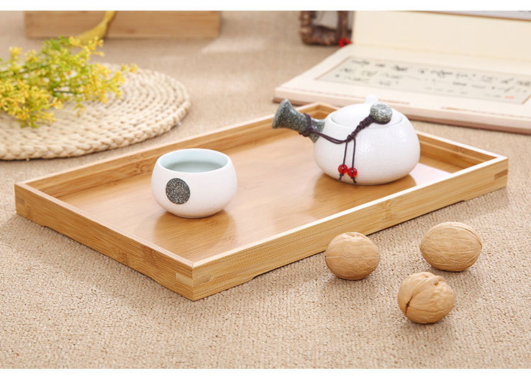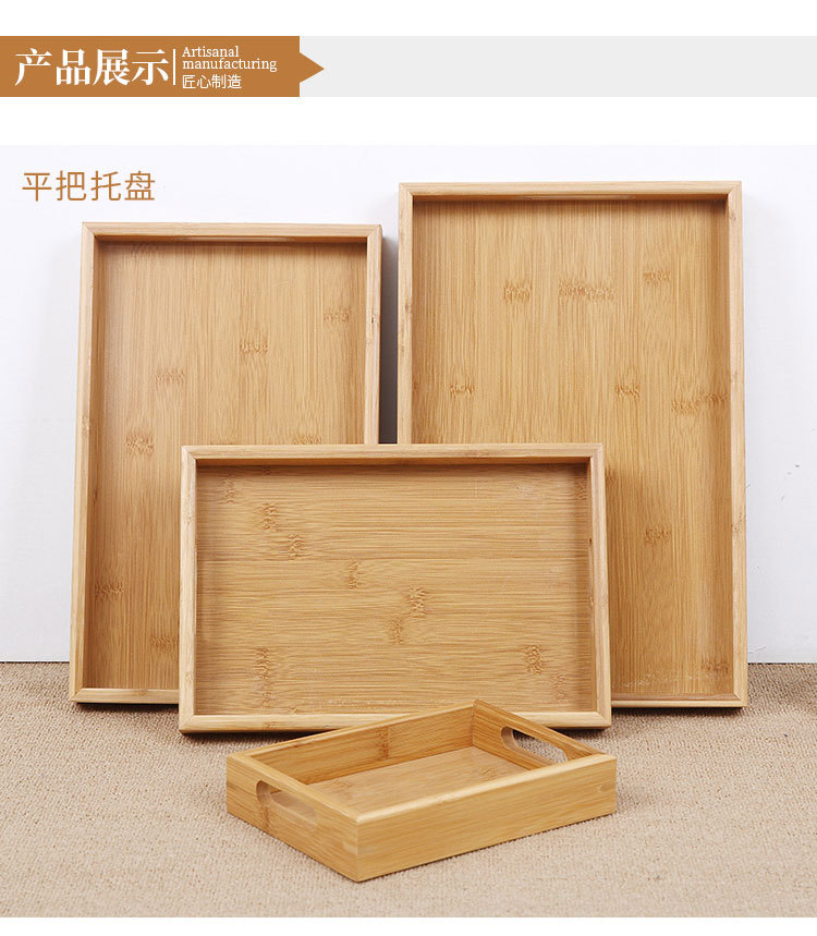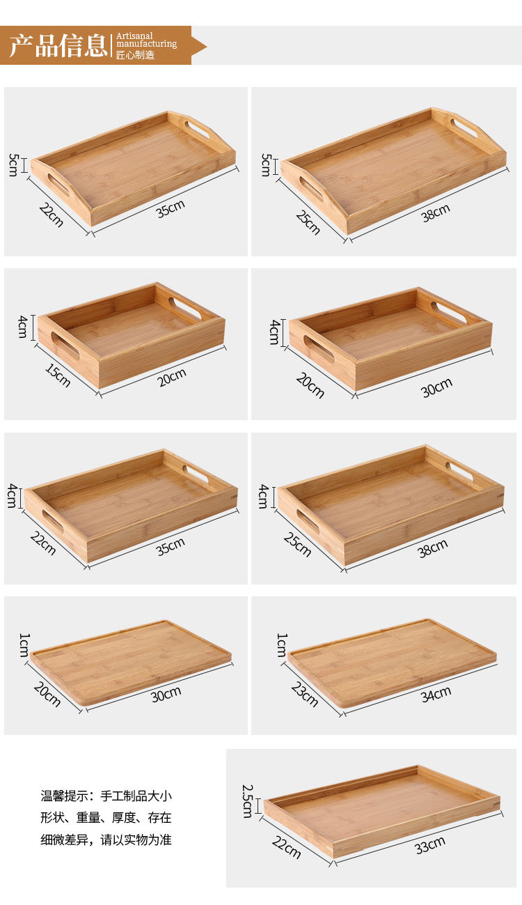 일본식 대나무 직사각형 티 트레이 가정용 나무 디너 플레이트 과일 빵 단단한 나무 트레이 재고 도매
