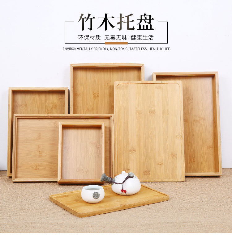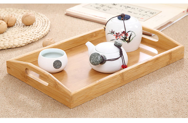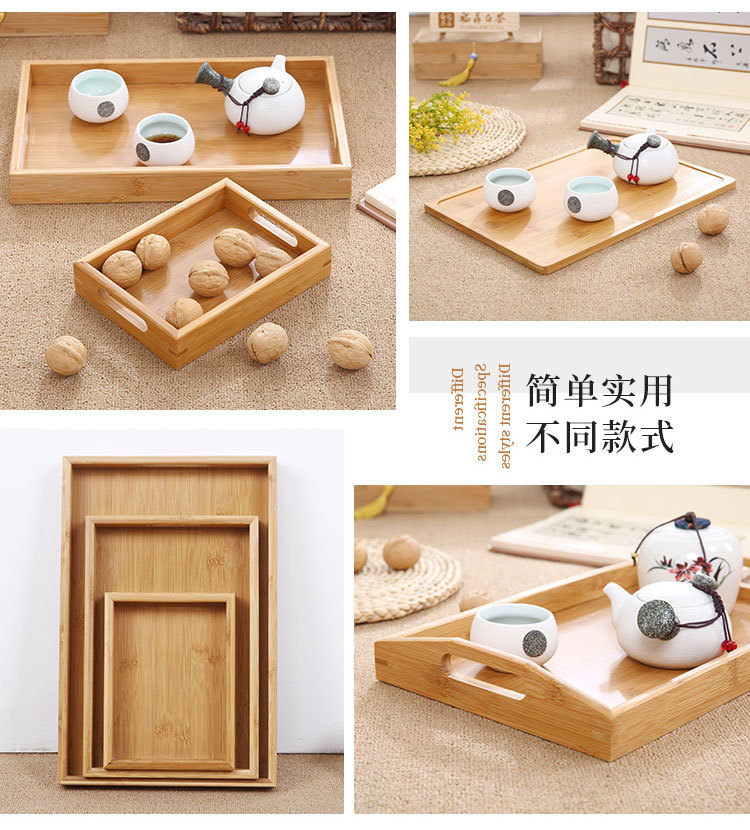 일본식 대나무 직사각형 티 트레이 가정용 나무 디너 플레이트 과일 빵 단단한 나무 트레이 재고 도매스토어 가기