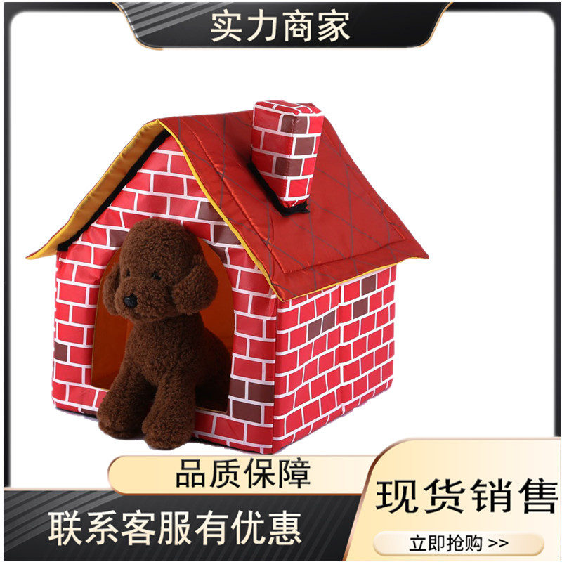 新款宠物房子 可拆洗狗狗窝 烟囱小单间房屋 狗房子 狗狗房窝垫