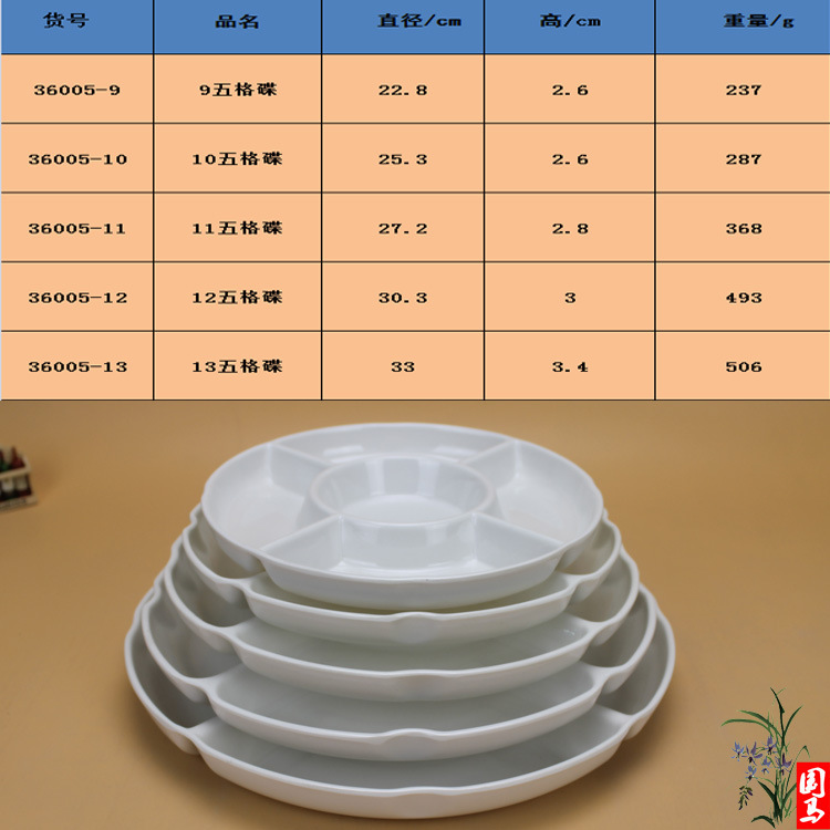 사탕 5칸 소금물 접시, 원형 식기, 멜라민 생선 필레 접시, 흰색 과일 접시, TKV 스낵 접시, 플라스틱