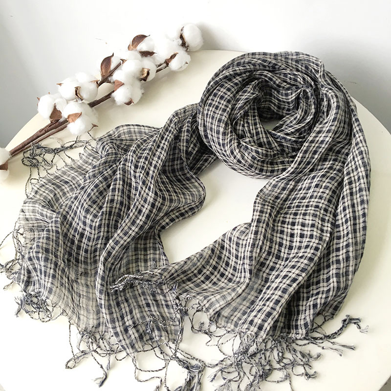 순수한 비와 이슬 린넨 기본 색상 네이비 작은 사각형 스카프 봄과 여름 문학 조커 스카프의 세대스토어 가기