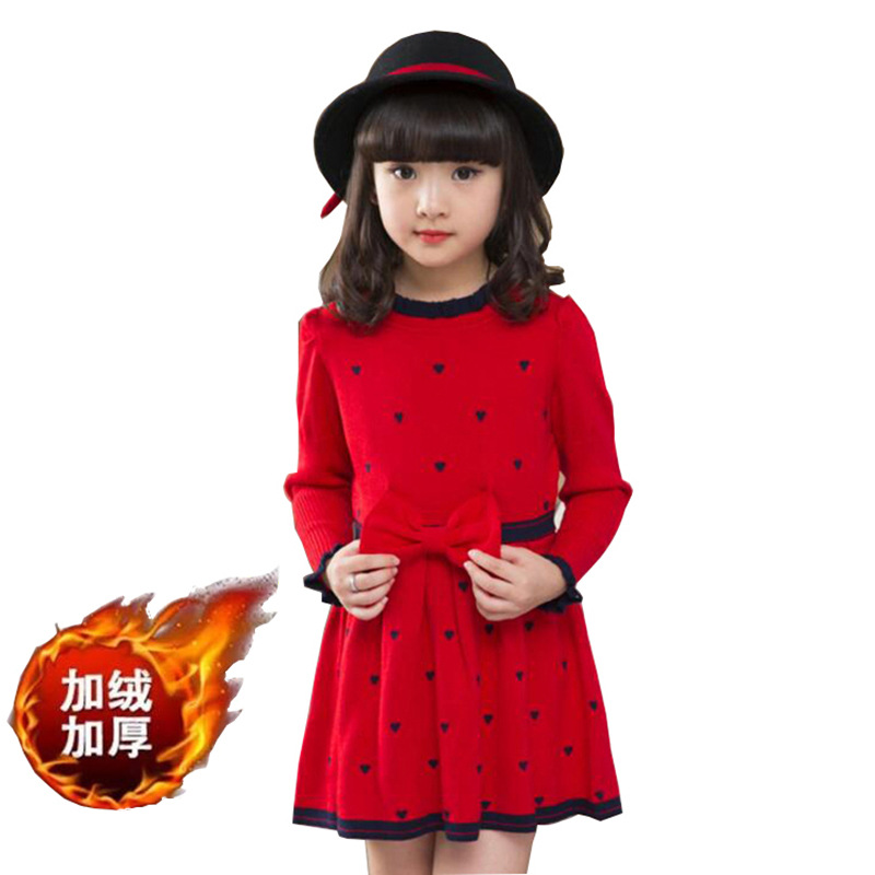 여아용 스웨터와 벨벳 드레스, 색상 선택 가능, 긴팔 라운드넥, 리본 스티치, 한국 스타일 공주 드레스스토어 가기