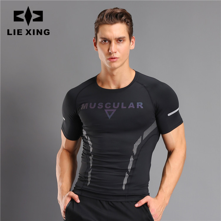 스타 헌터 남성용 프로 타이트 반팔 스포츠 피트니스 티셔츠 속건 스트레치 통기성 수분 흡수 로고 인쇄 12009