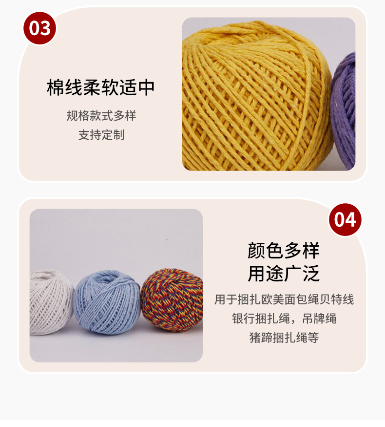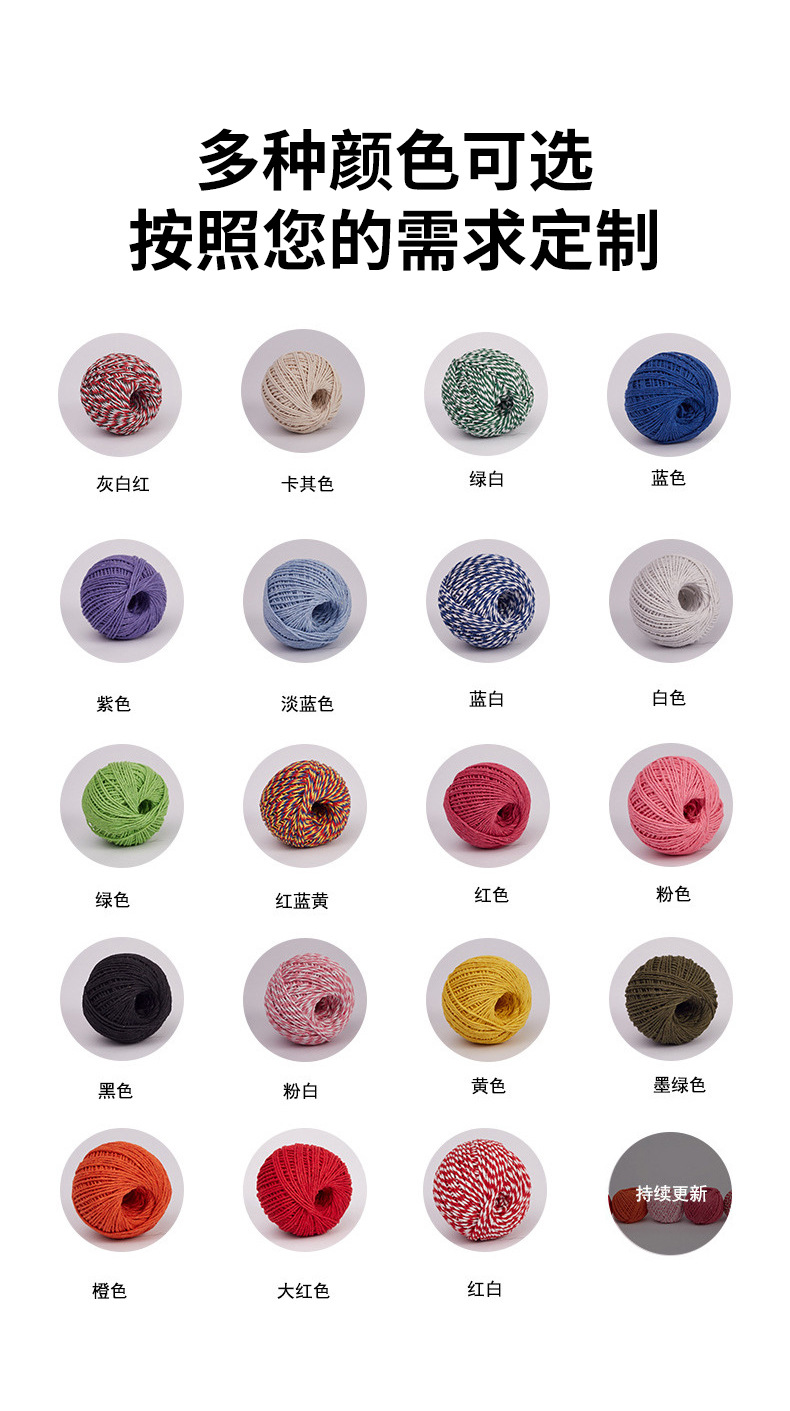 1.5mm 더블 컬러 코튼 로프 돼지 트로터 라인 더블 스트랜드 컬러 식품 묶음 포장 로프 Zongzi 로프 Zongzi 라인스토어 가기