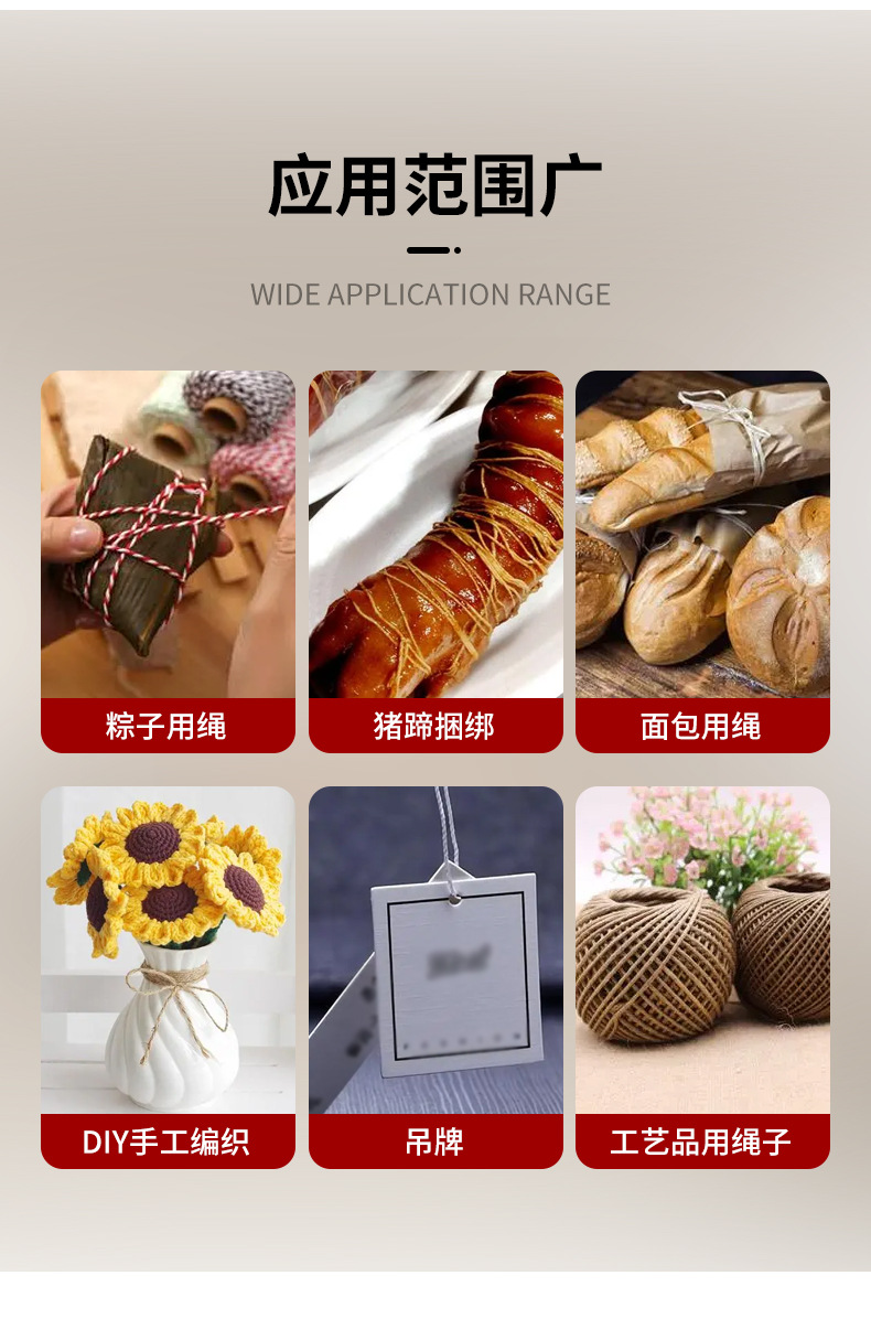 1.5mm 더블 컬러 코튼 로프 돼지 트로터 라인 더블 스트랜드 컬러 식품 묶음 포장 로프 Zongzi 로프 Zongzi 라인