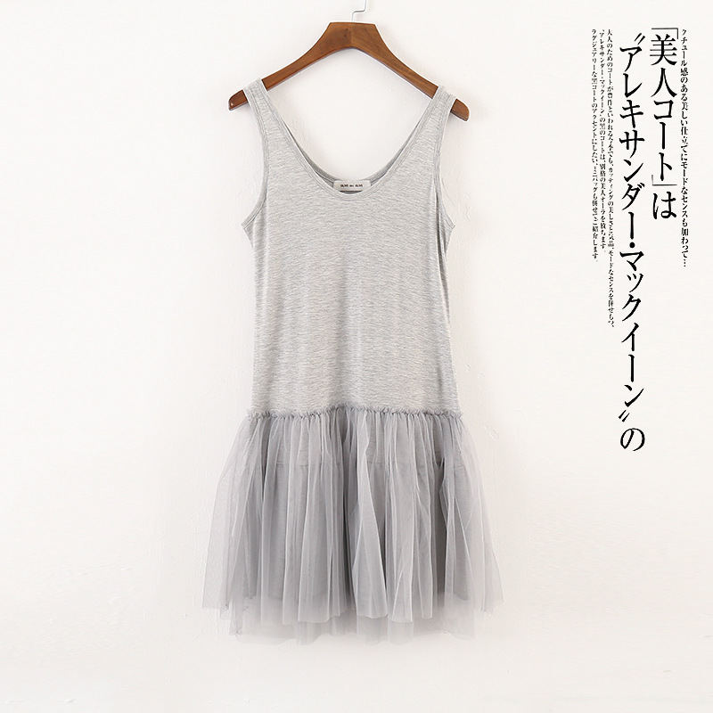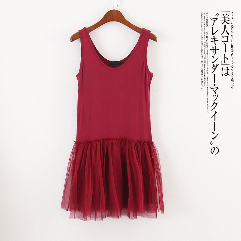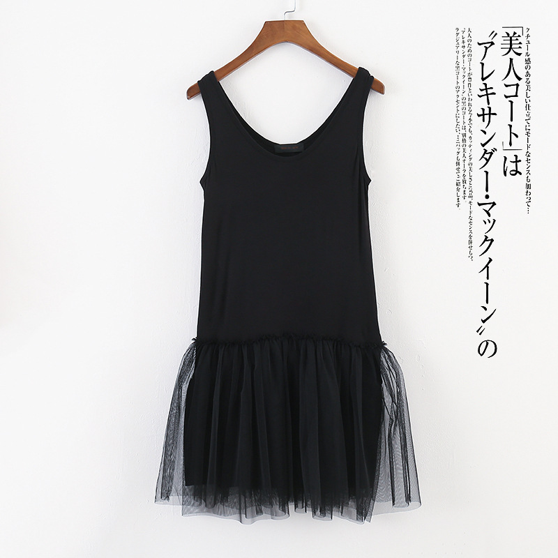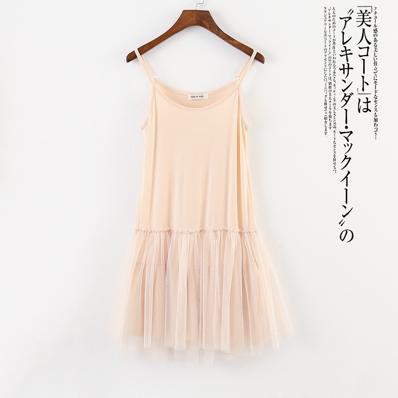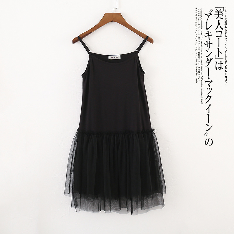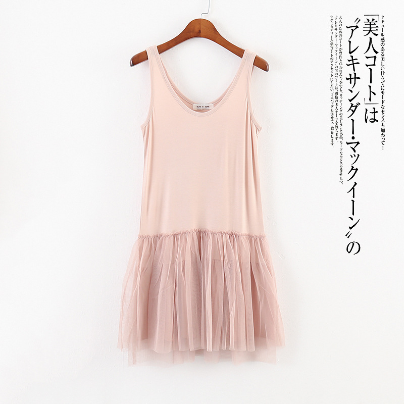 봄과 가을 새로운 모달 민소매 원피스 캐미솔 중간 길이 스커트 낮은 허리 메쉬 스커트 플러스 사이즈 베이스 스커트스토어 가기