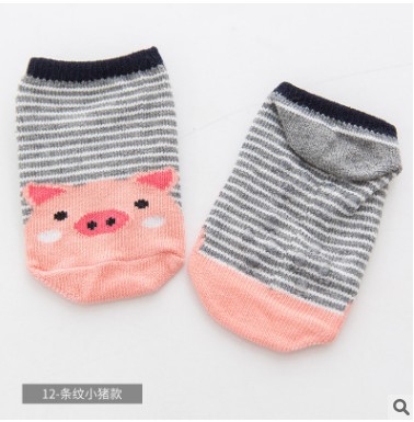 만화 작은 동물 바닥 양말 한국면 어린이 보이지 않는 보트 양말 아기 실리콘 미끄럼 방지 아기 양말