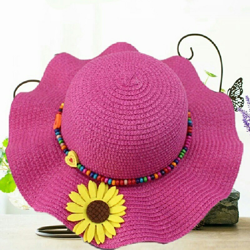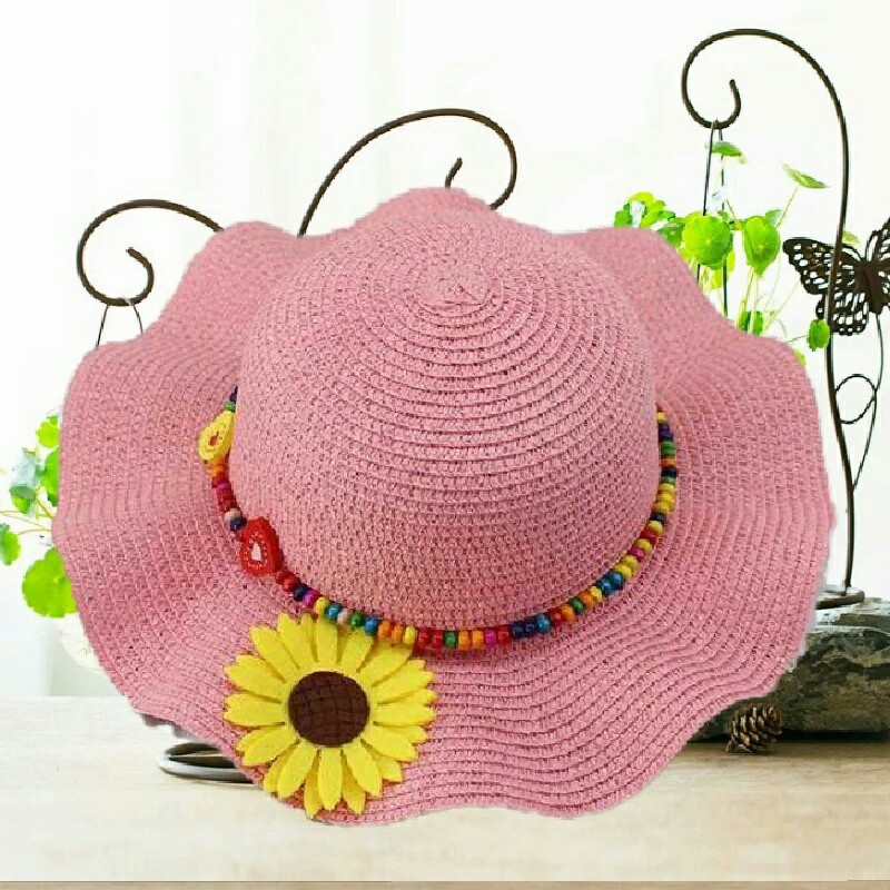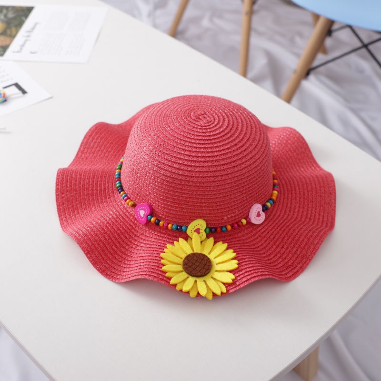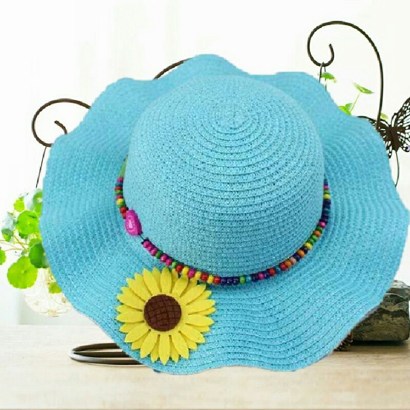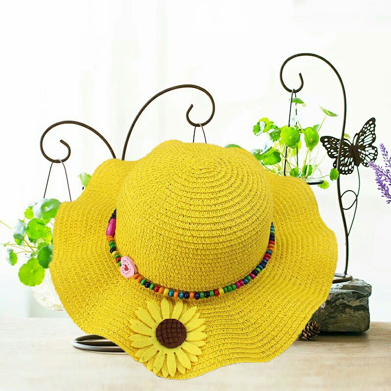 어린이 태양 모자 신선한 한국식 웨이브 도트 해바라기 소녀의 밀짚 모자 여행 태양 모자 아기 비치 모자스토어 가기