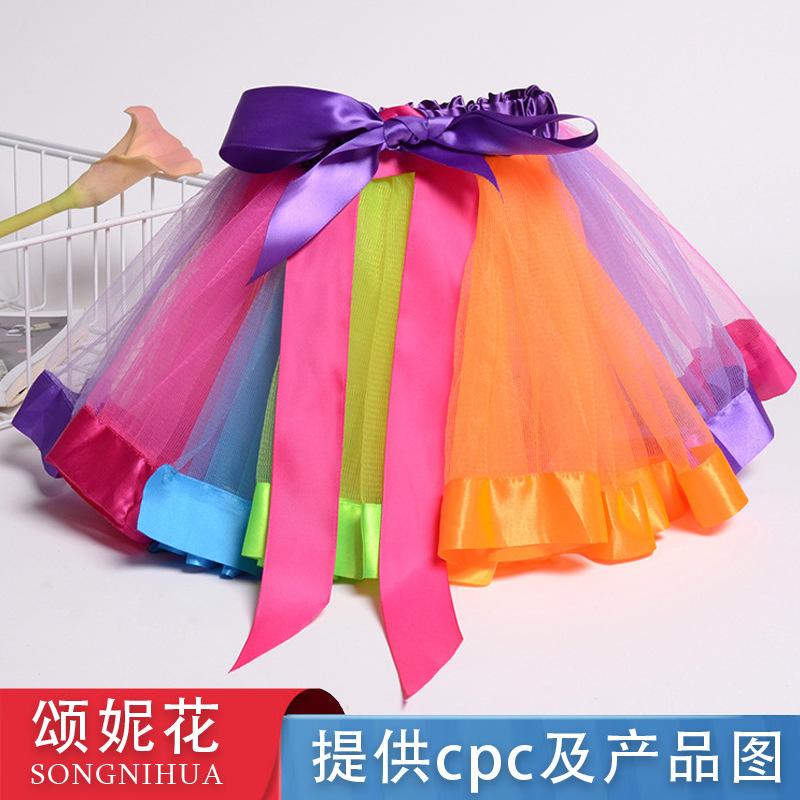 크로스 보더 핫 셀링 어린이 메쉬 다채로운 스커트 유럽과 미국 댄스 공연 투투 스커트 소녀 스커트 레인보우 스커트