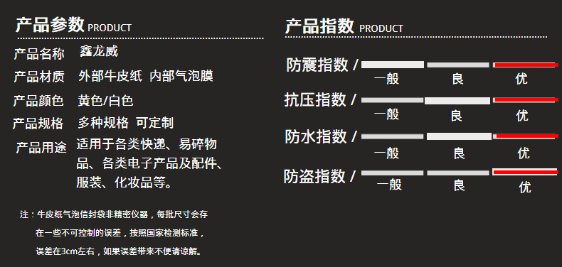 因机器工艺正常误差问题,所有现货尺寸开口尺寸有正负0.5cm的公差,长度尺寸1cm以内公差,每批次颜色厚薄都有误差。