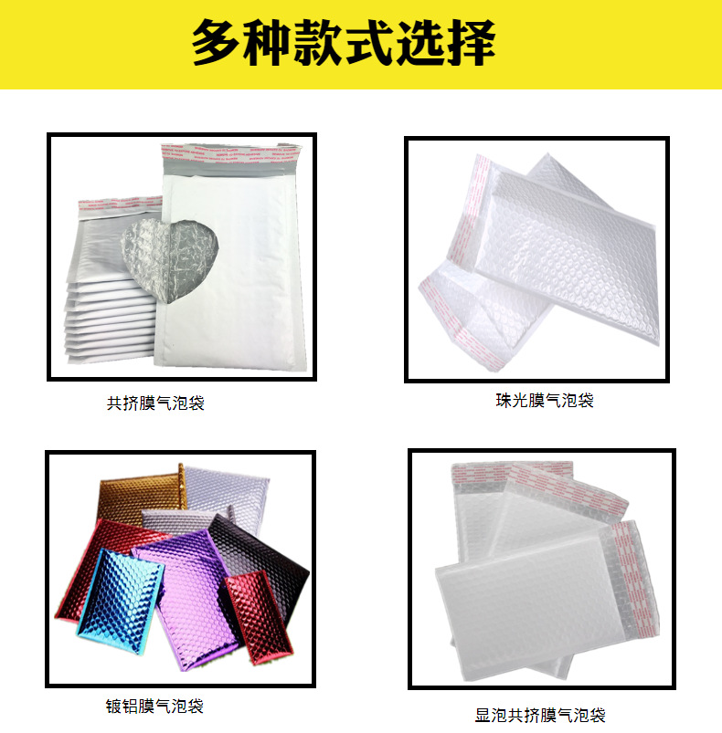 牛皮纸气泡袋  灰白共挤膜气泡袋  珠光膜气泡袋  彩色共挤膜气泡袋  镀铝膜气泡袋