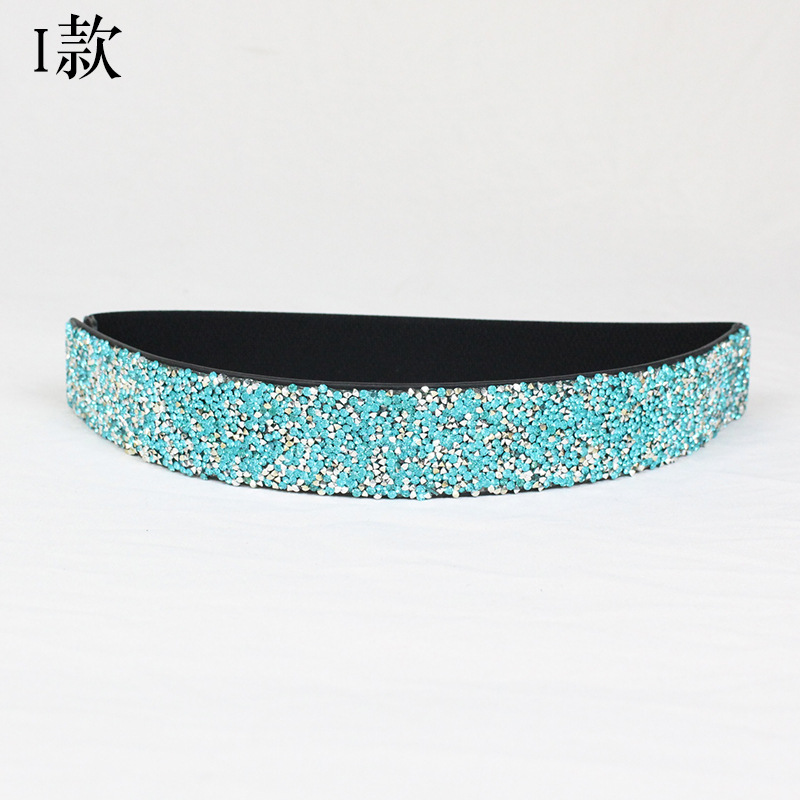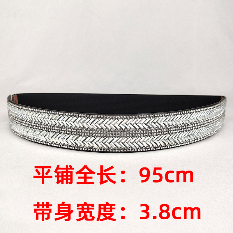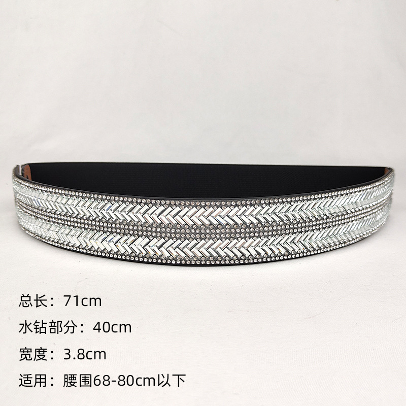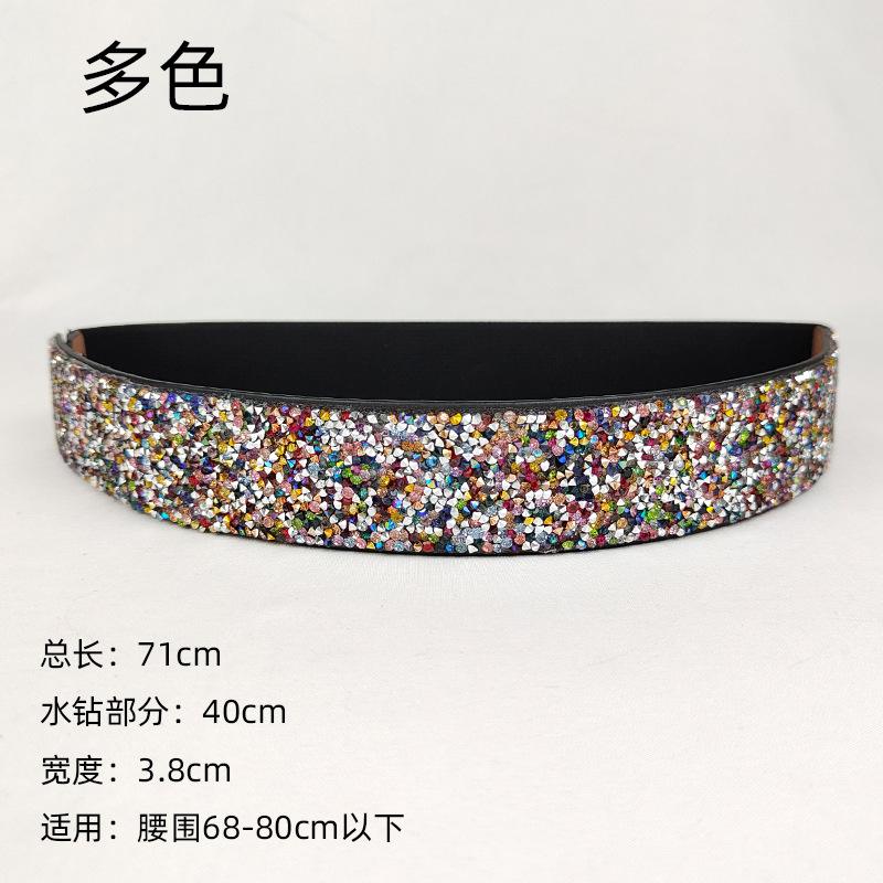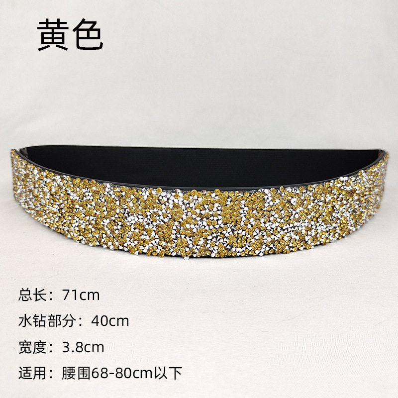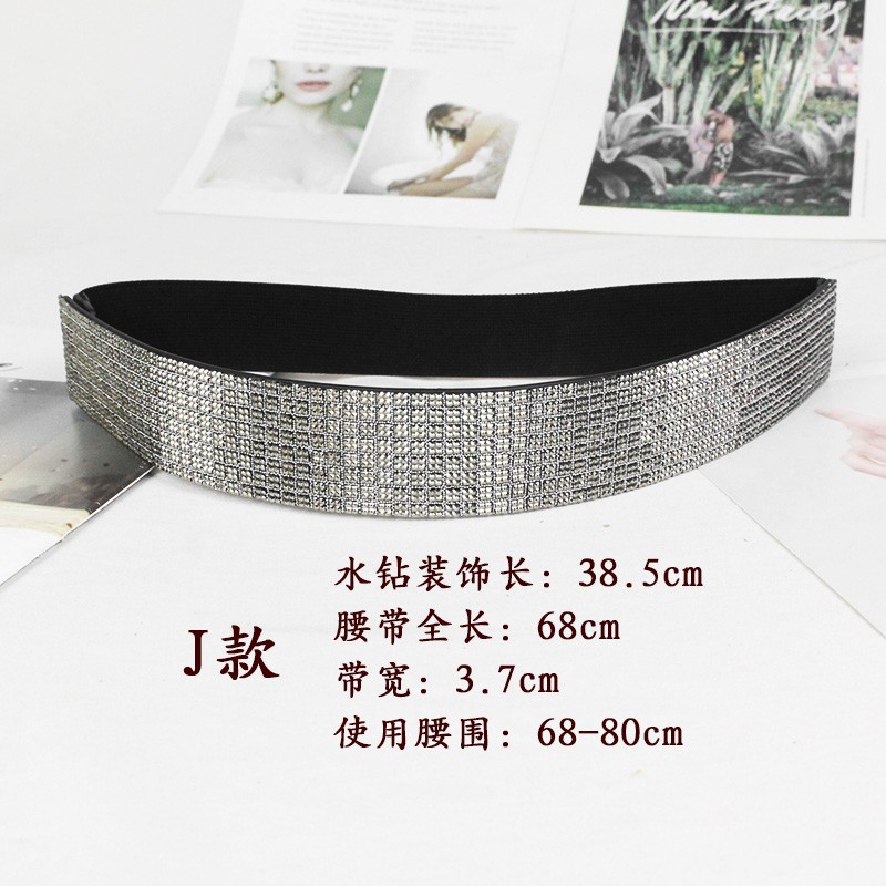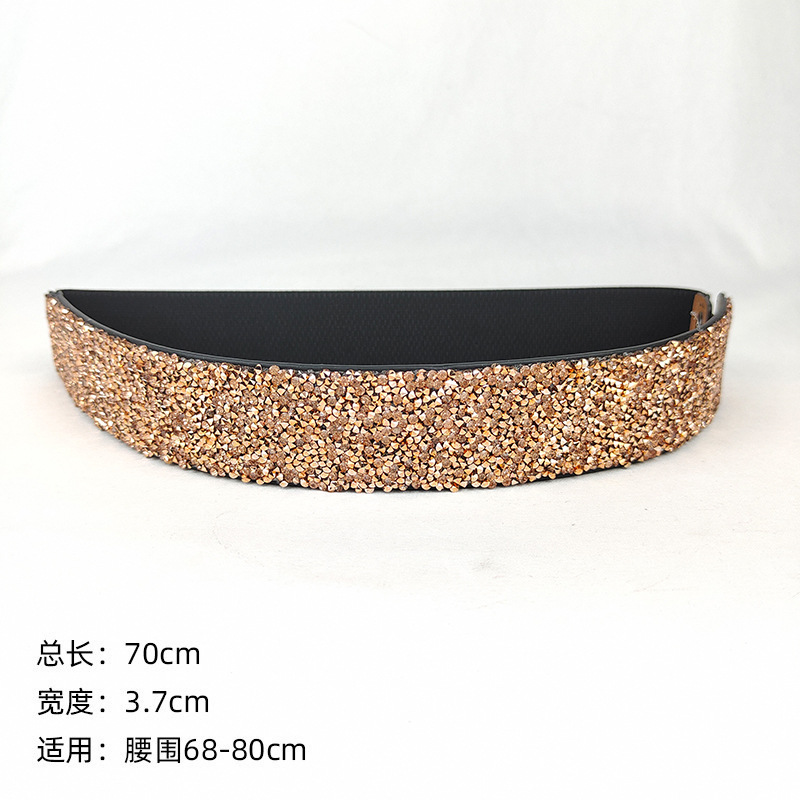 블링 모조 다이아몬드 박힌 풀 다이아몬드 탄성 와이드 벨트 플래시 다이아몬드 여성용 올매치 크리스탈 허리 패션 탄성 벨트