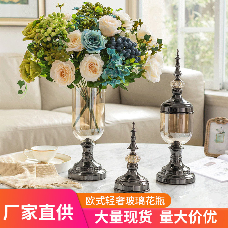 유럽 스타일 복고풍 유리 창조적 인 거실 공예 스타일 꽃병 홈 식탁 조명 럭셔리 꽃 배열 투명 하이 엔드 감각