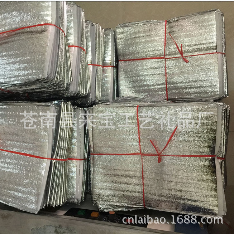 产品的材质为2MM和3MM厚度的铝箔敷珍珠棉,