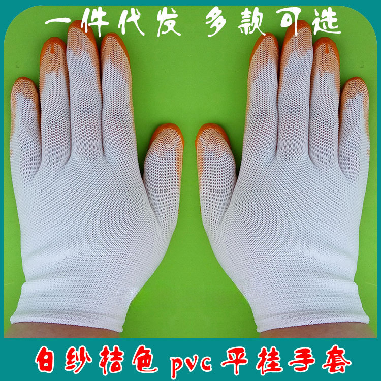 【商品名称】:十三针尼龙白纱桔PVC浸胶挂胶手套;