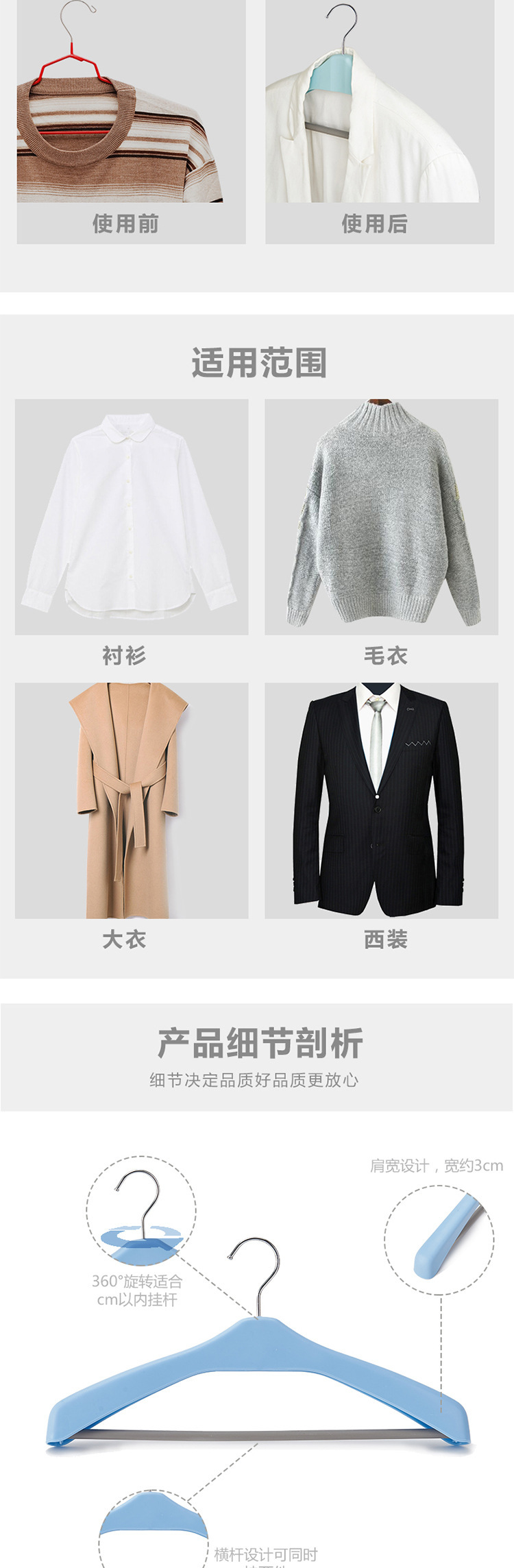 HSBC 신지아 42cm 부티크 의류 플라스틱 와이드 숄더 미끄럼 방지 의류 랙 남성과 여성의 세트 랙 건조대