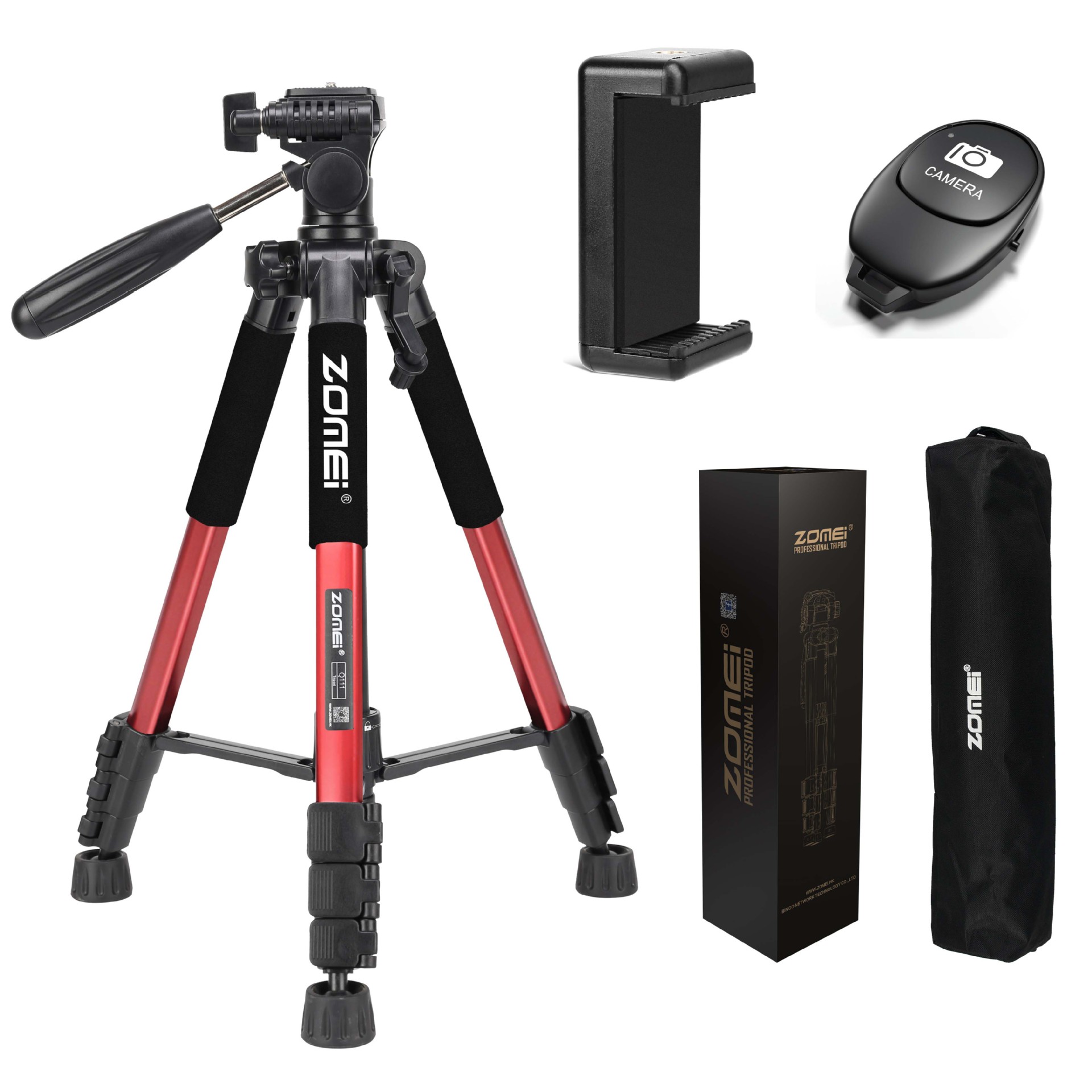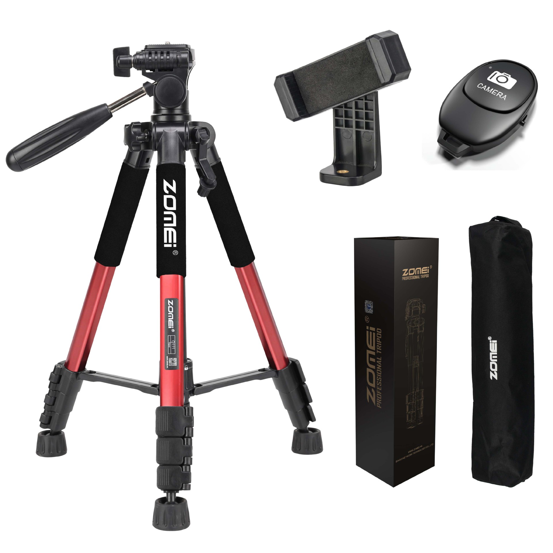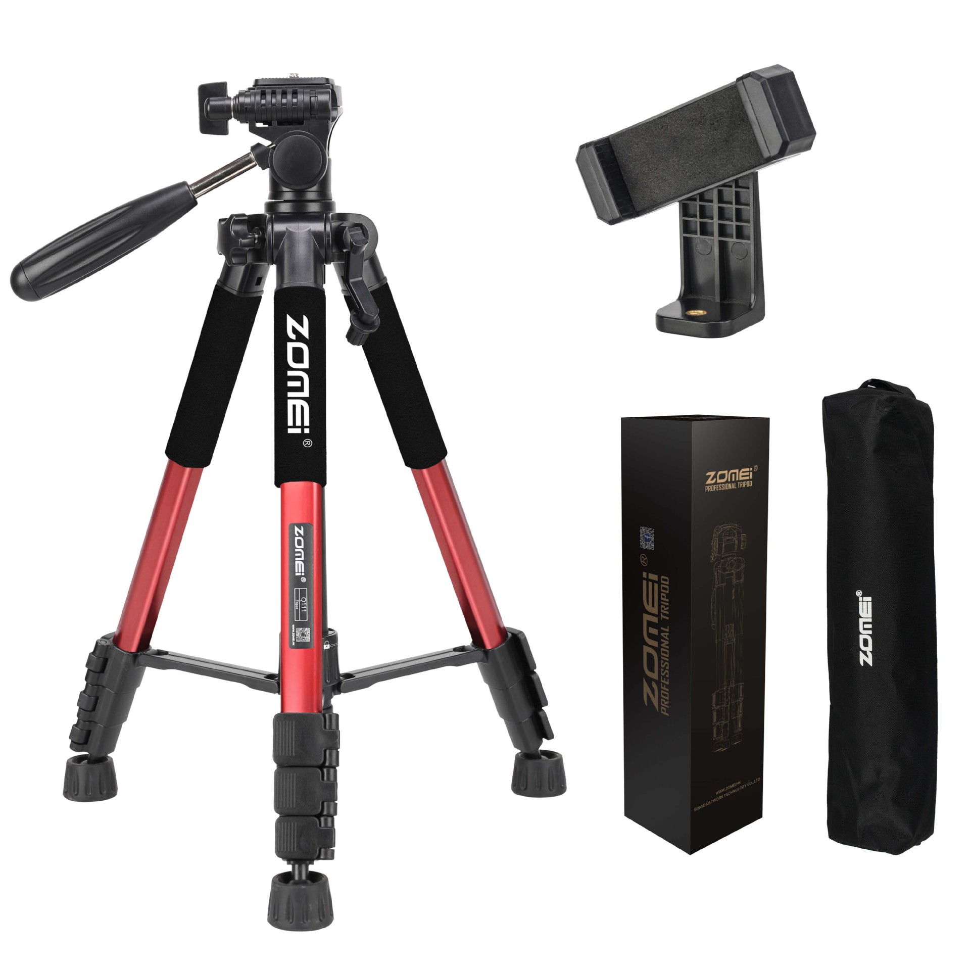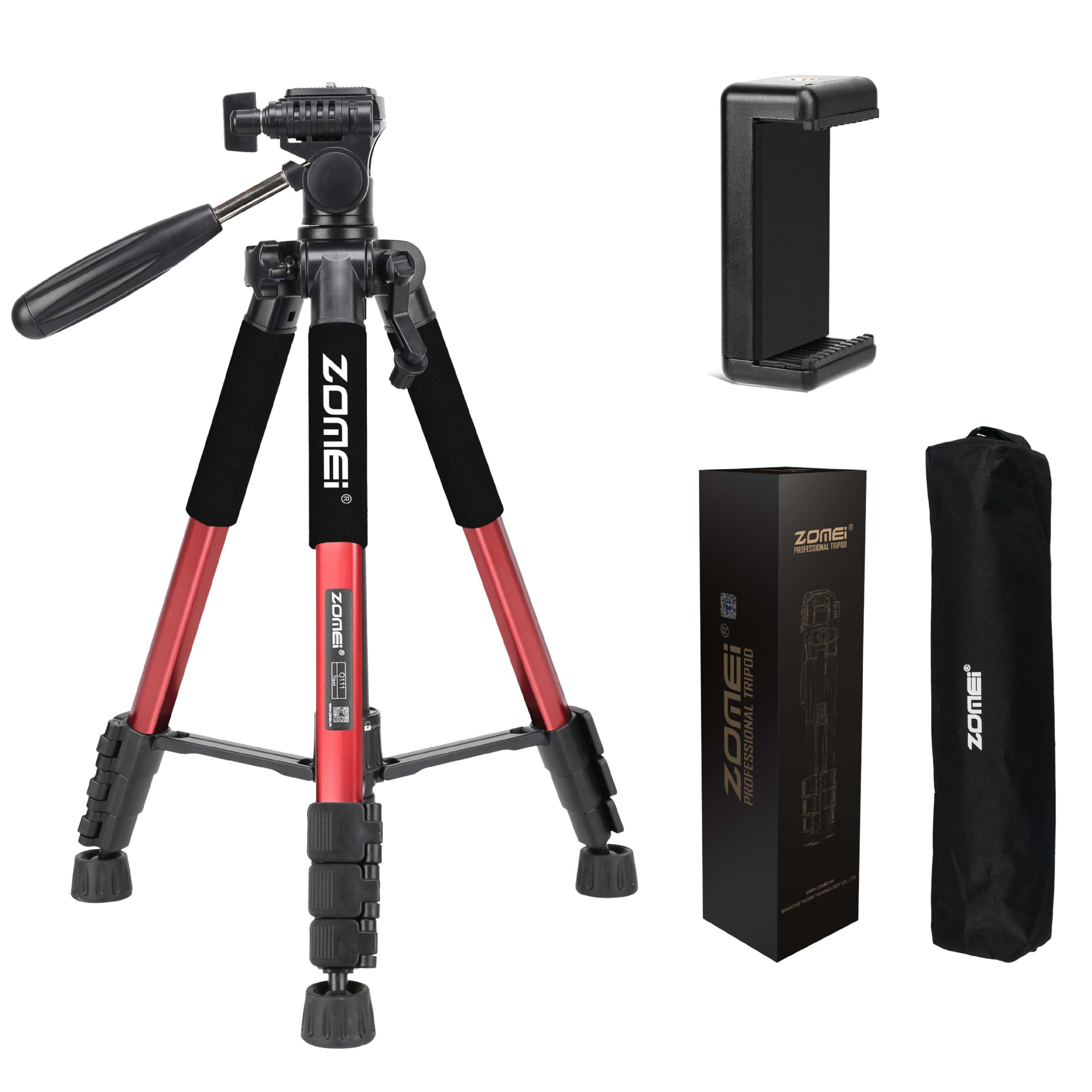 • Q111 빨간색 삼각대 + 조절 가능한 휴대폰 클립