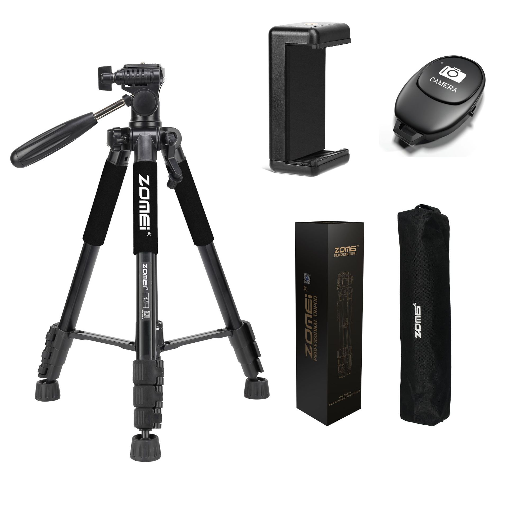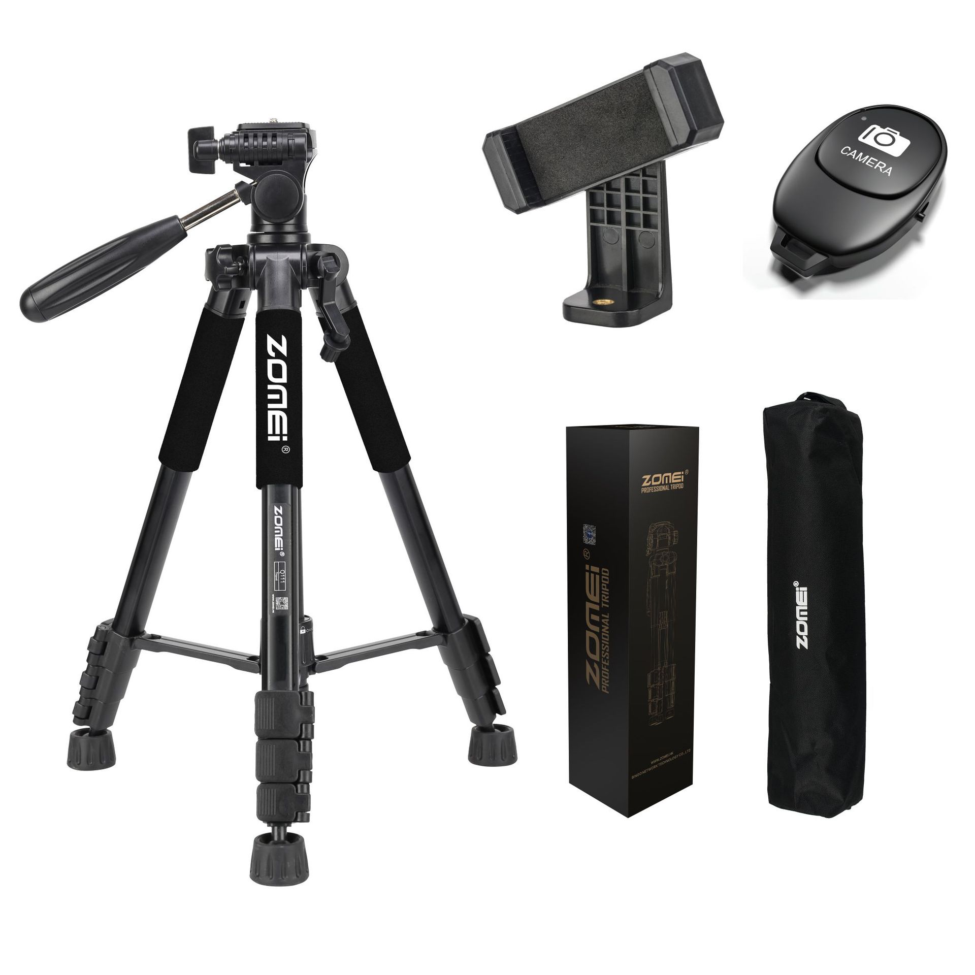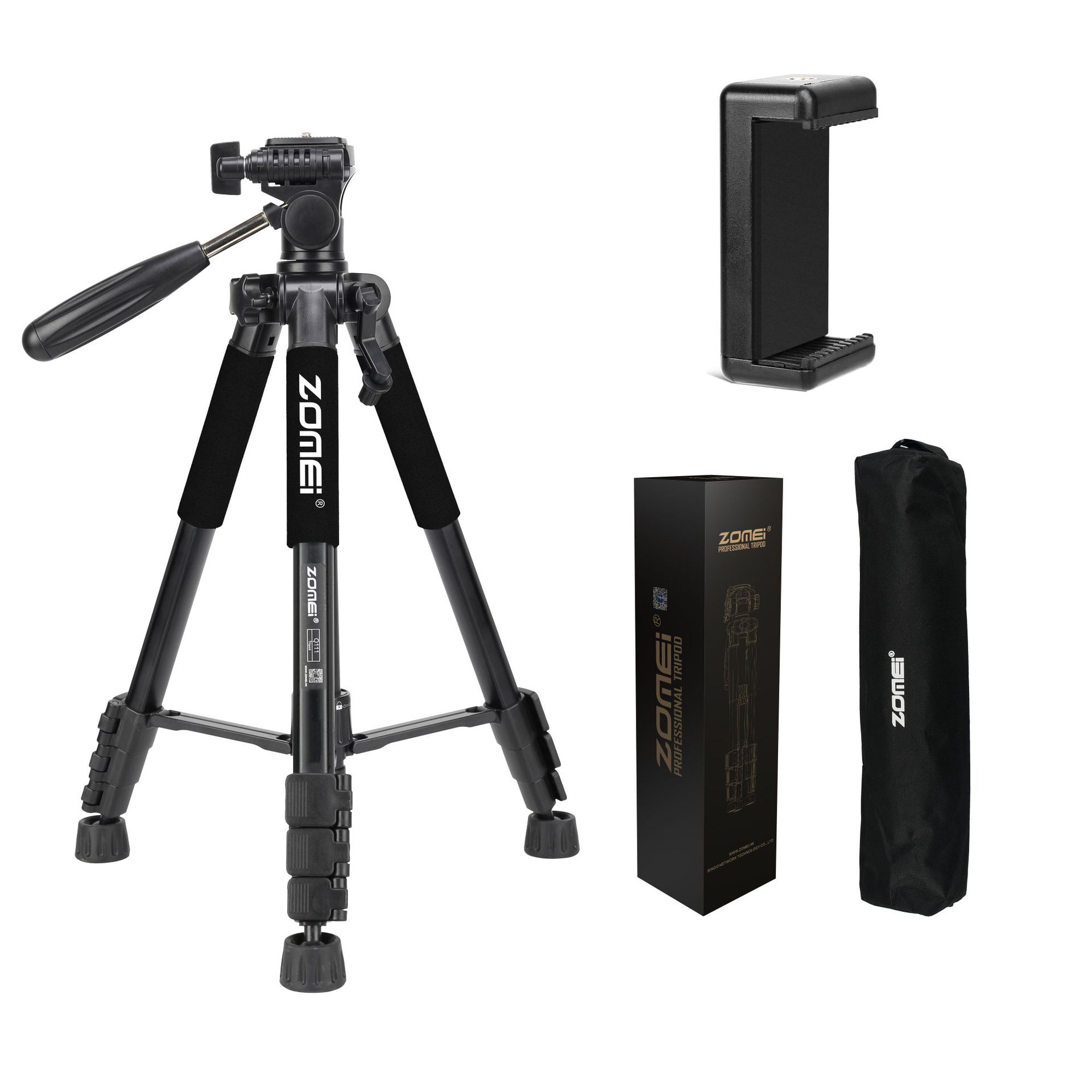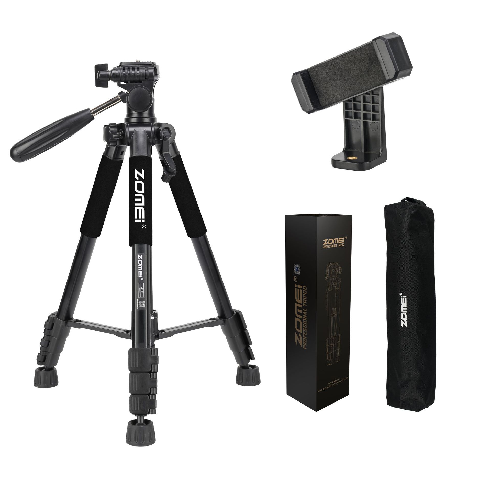 • Q111 검정색 삼각대 + 조절 가능한 휴대폰 클립