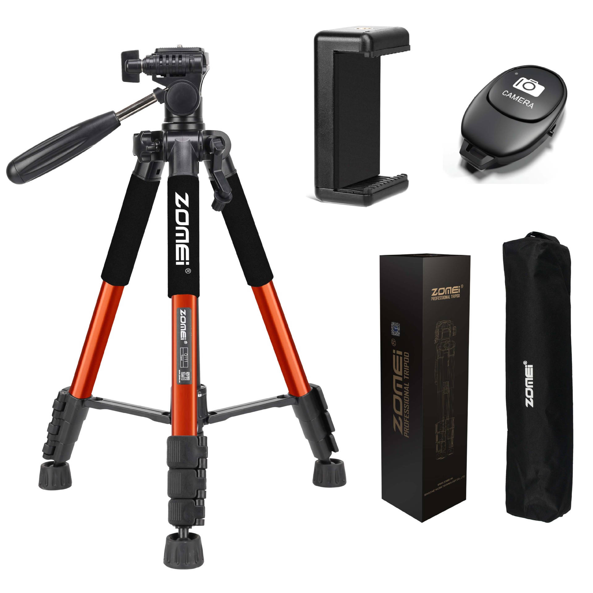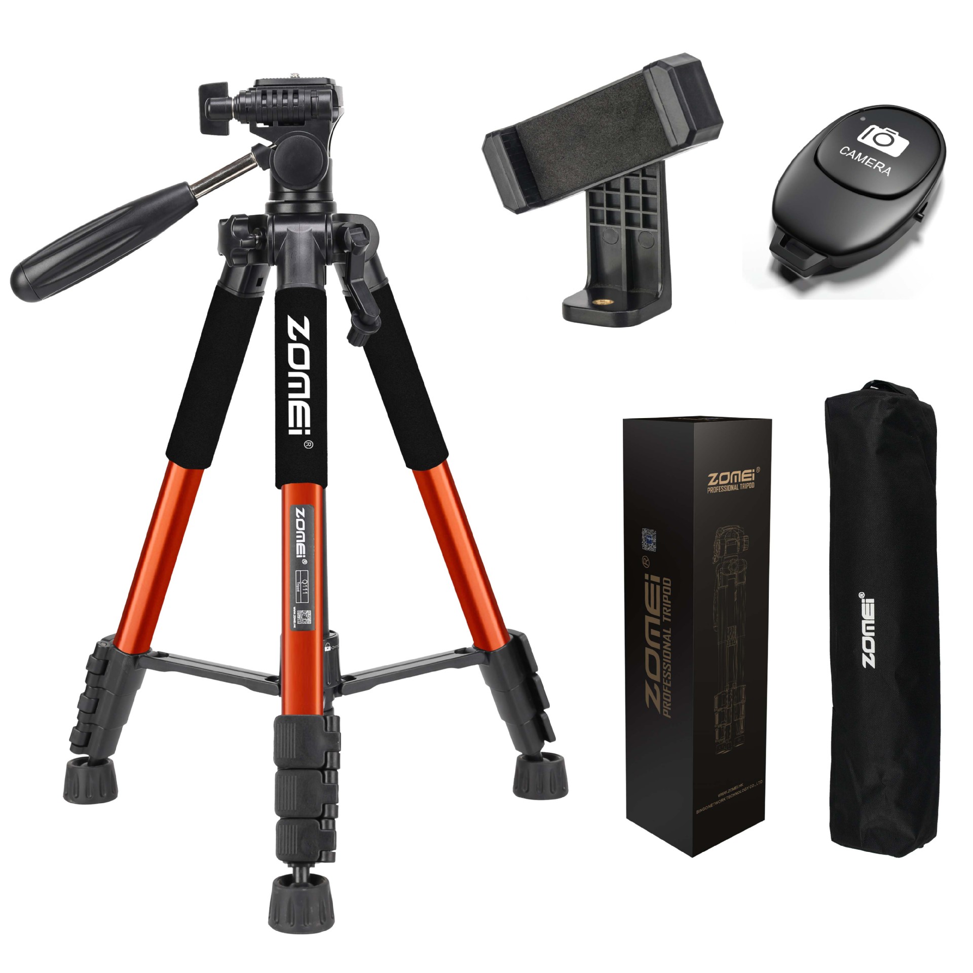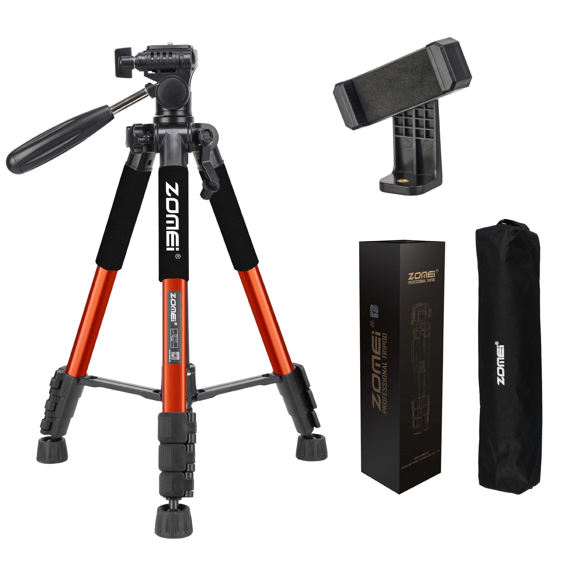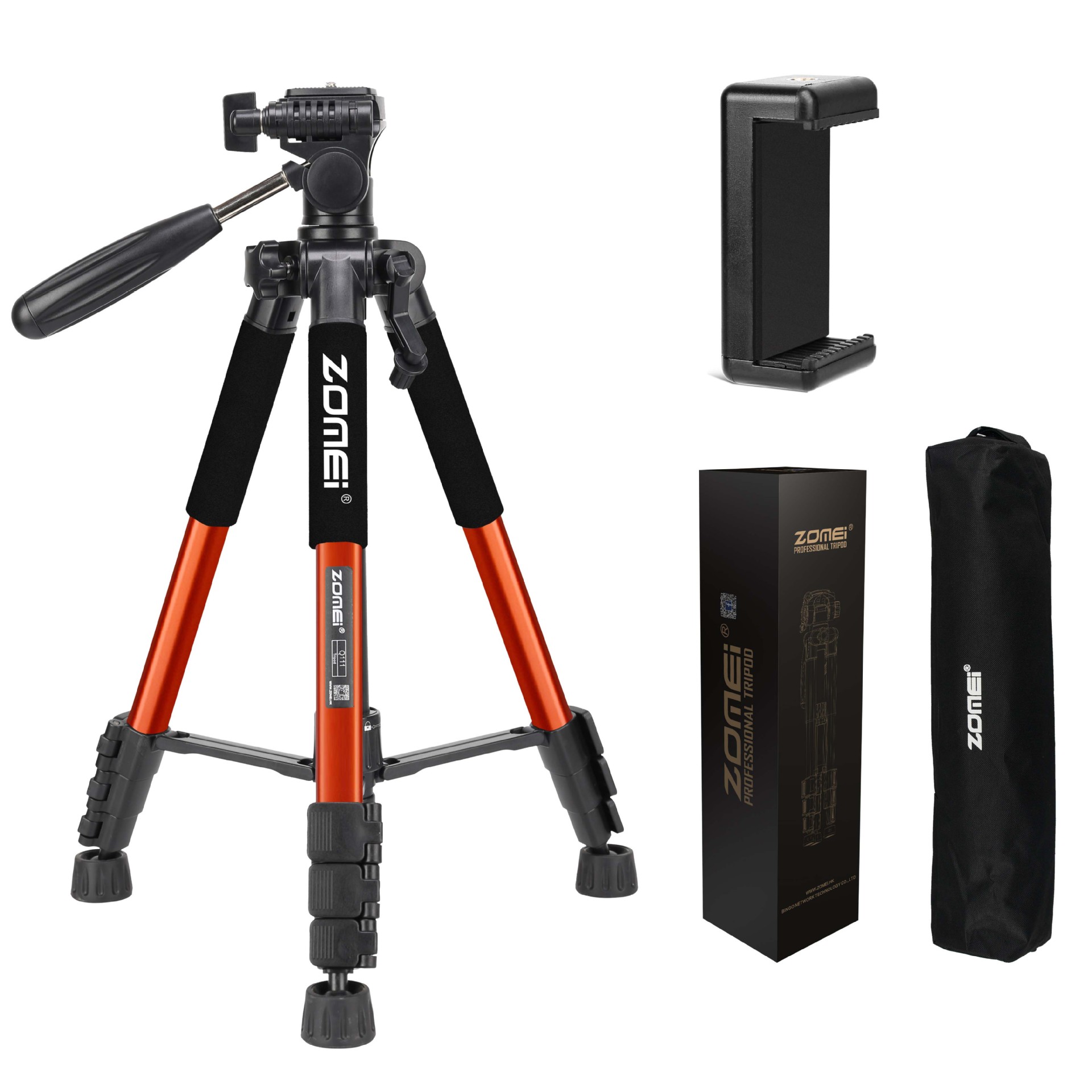 • Q111 주황색 삼각대 + 조절 가능한 휴대폰 클립