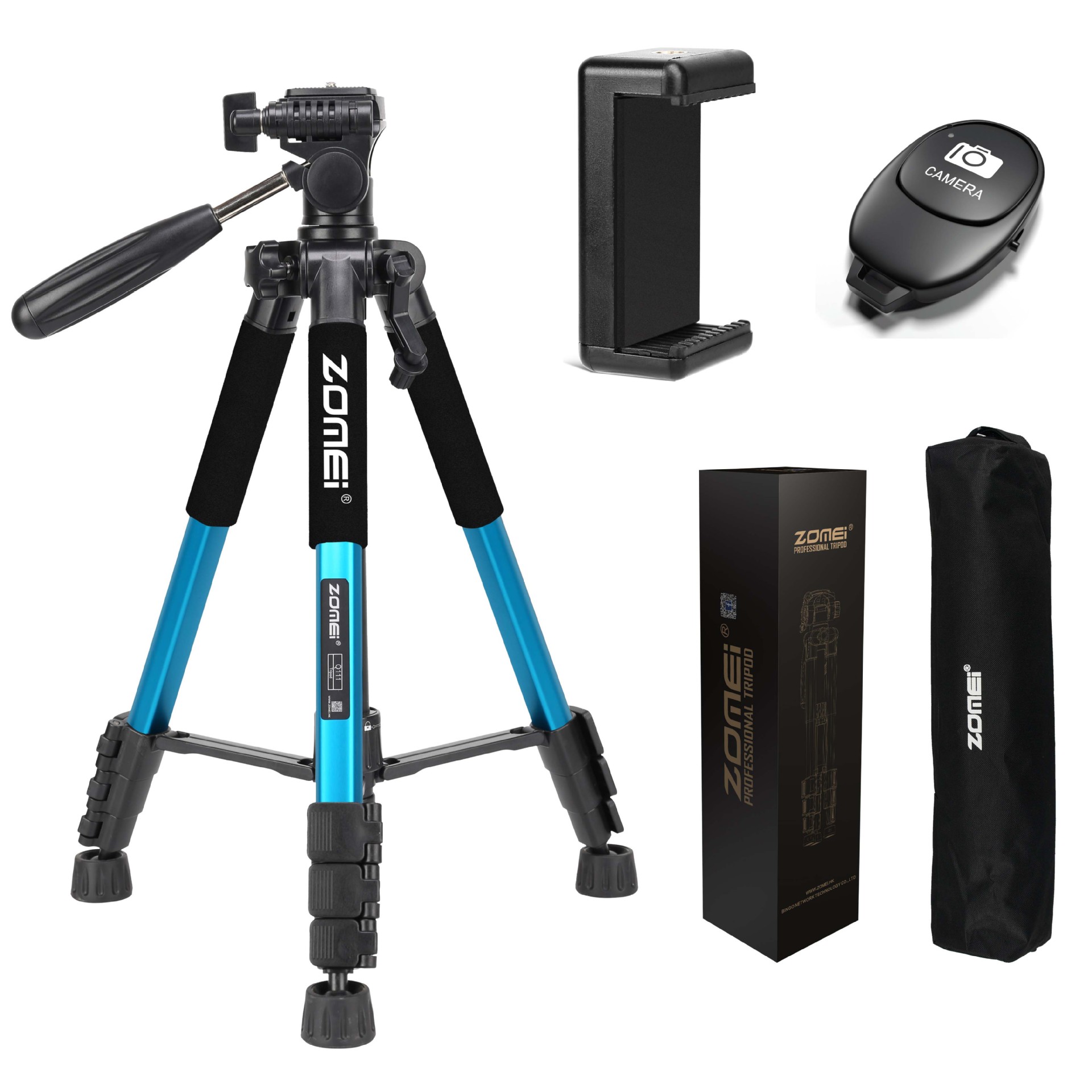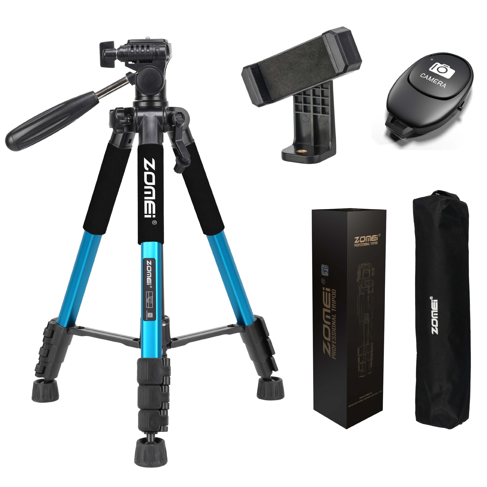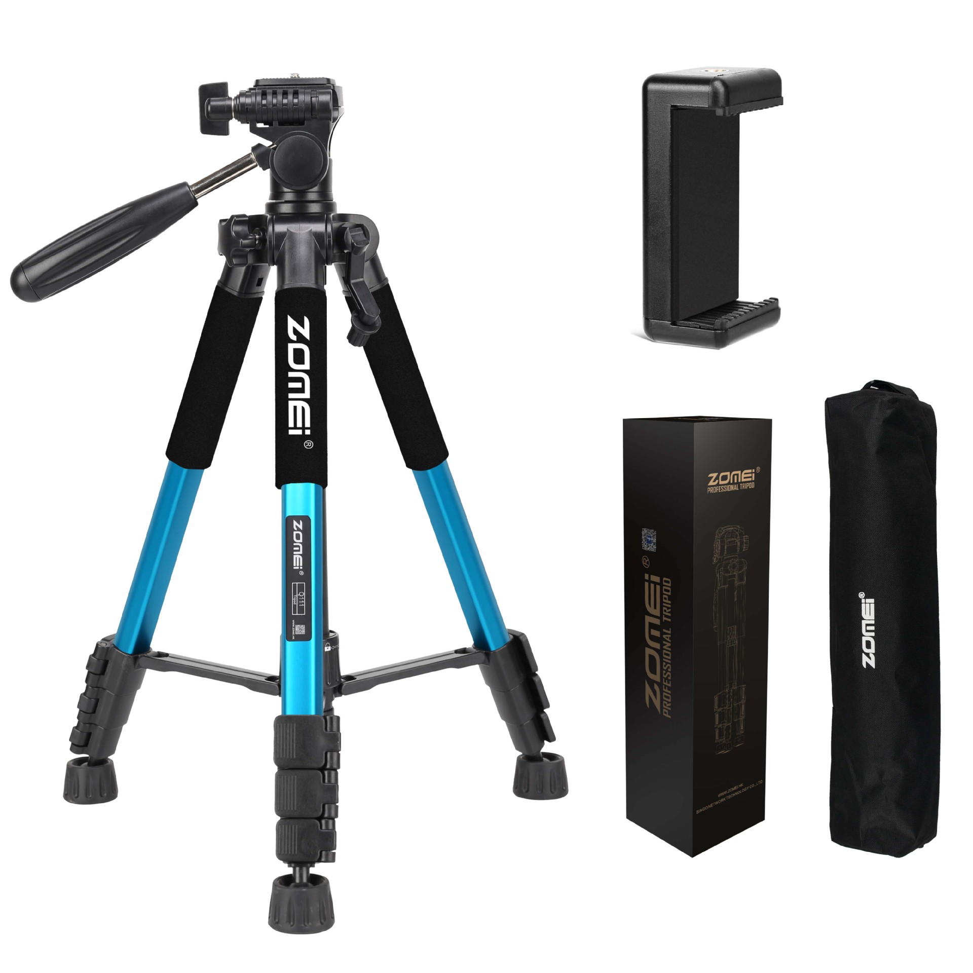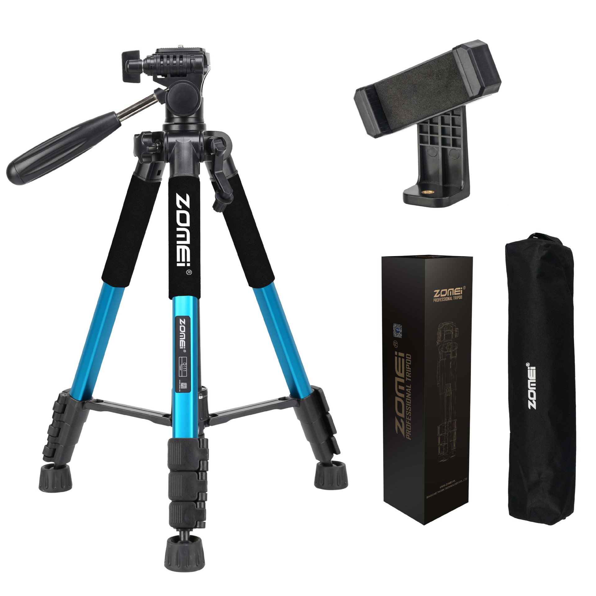 • Q111 파란색 삼각대 + 조절 가능한 휴대폰 클립