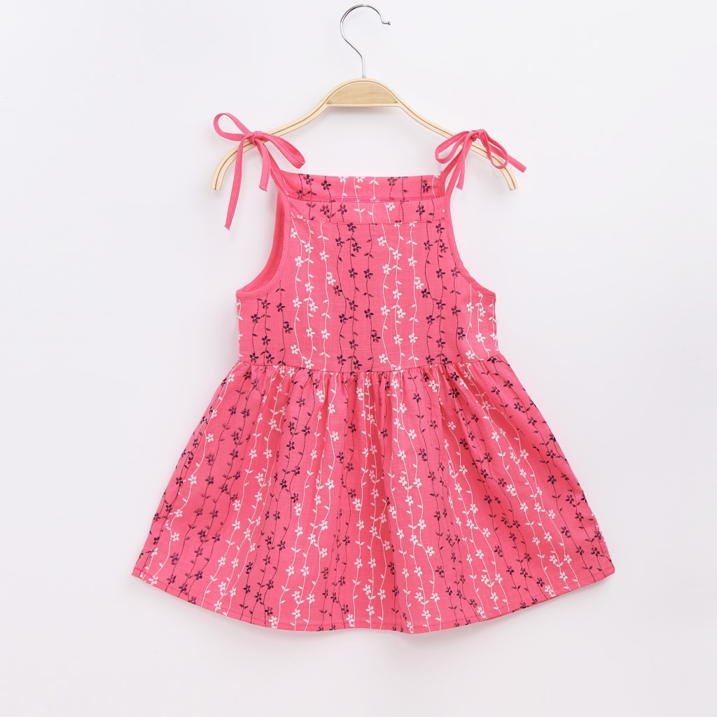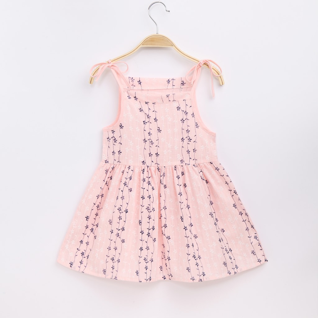 유럽과 미국의 새로운 2025 여름 스타일 여아 한국 스타일 서스펜더 스커트 아동용 핑크 민소매 프린트 드레스 유아 아동복스토어 가기