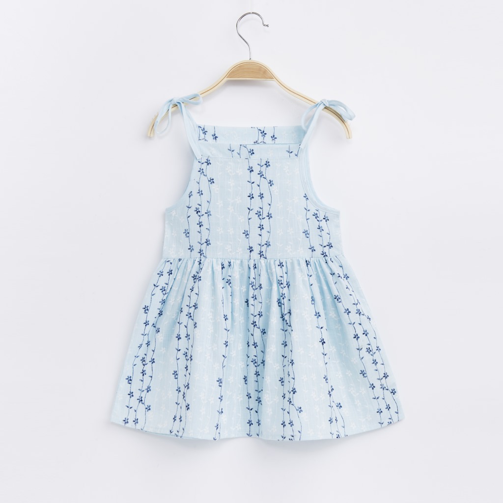 • 3 면과 린넨 라이트 블루 세로 플로럴 슬립 스커트