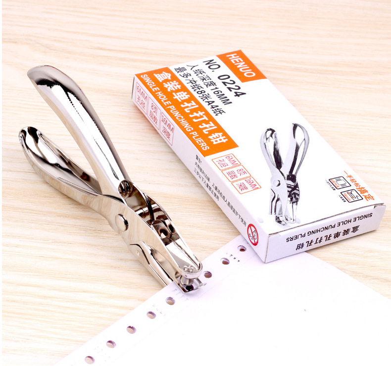 手握式金属文具圆孔径6mm打孔钳打洞器纸张打孔机盒装单孔打孔器