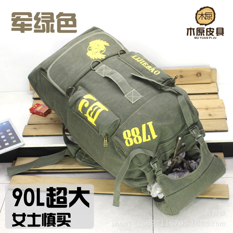 90L 빈티지 캔버스 야외 배낭 캐주얼 여행 대형 등산 캠핑 배낭 남성용 수하물 큰 가방
