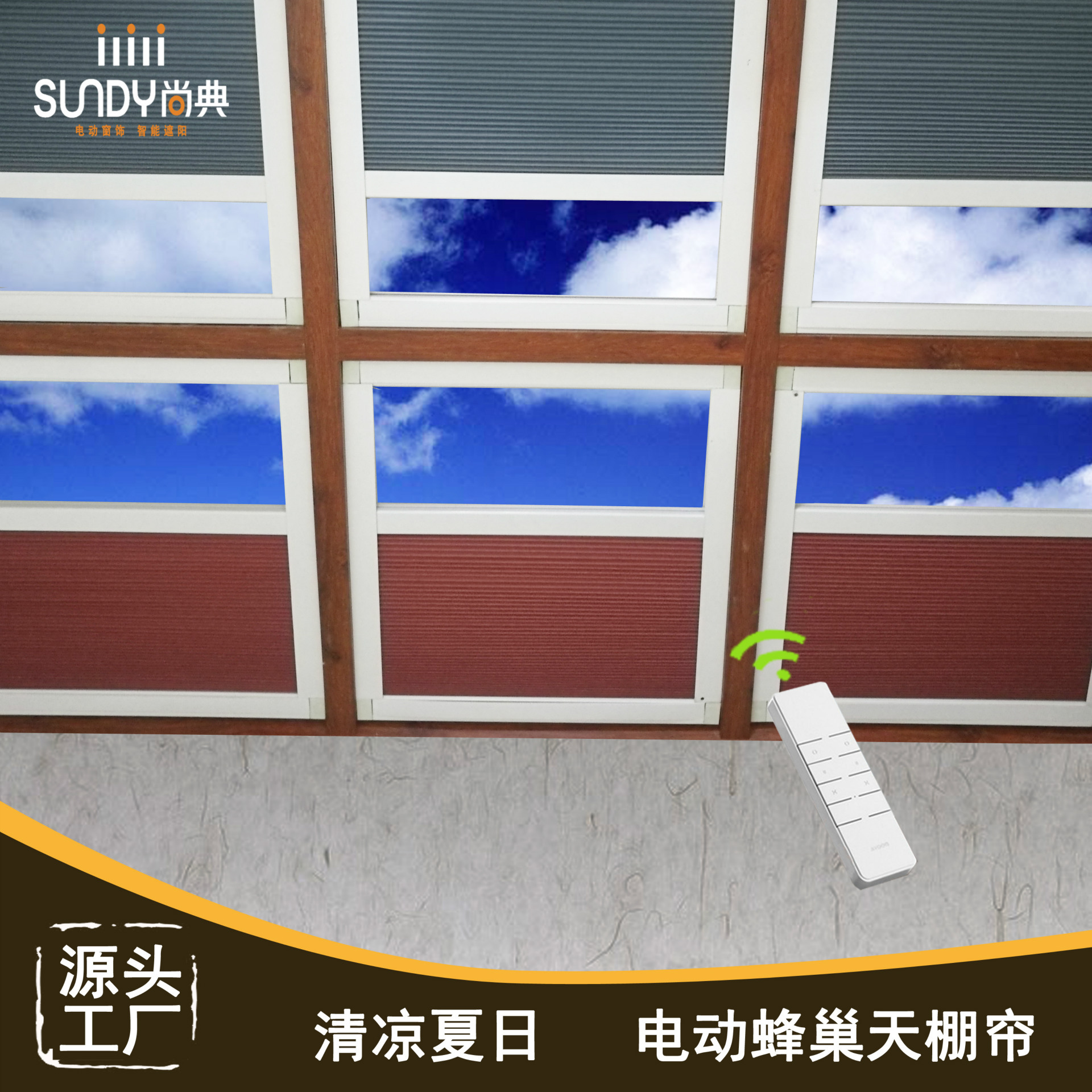 스마트 수동 전동 리모컨 차광 단열 방음 자외선 차단 선룸 조명 천장 주야간 벌집형 커튼 제조업체스토어 가기