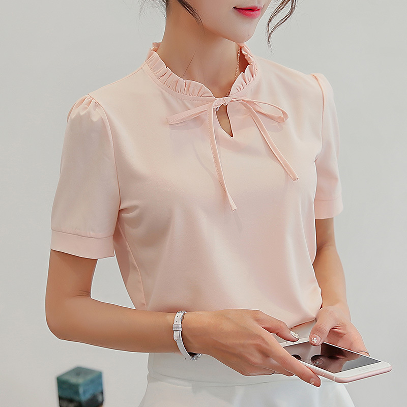 Calan Diaua 2022 봄과 여름 새로운 한국 스타일 여성 의류 슬림 핏 플러스 사이즈 단색 베이스 셔츠 반팔 셔츠 여성용 쉬폰 셔츠스토어 가기