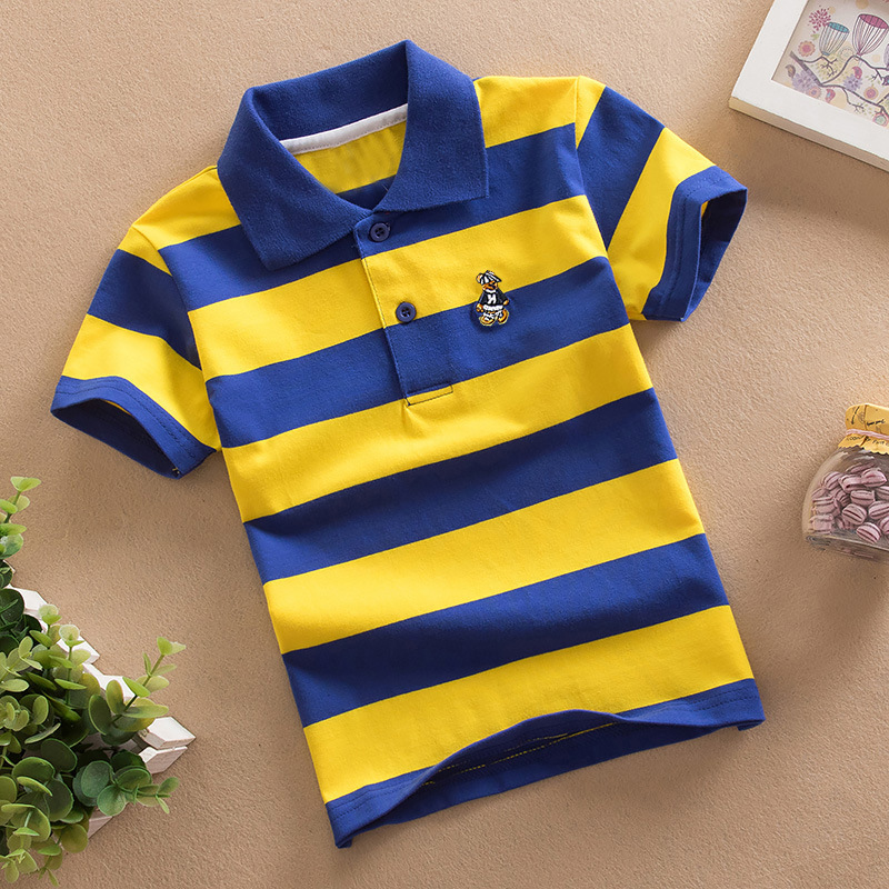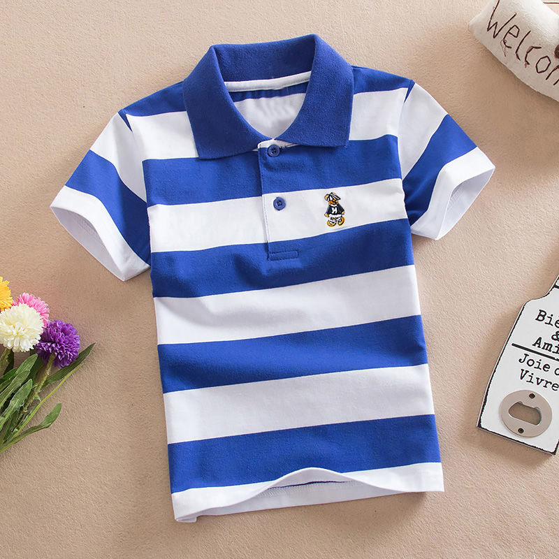 어린이 의류 1 ~ 15 세 90-170 대학 스타일 소년 반팔 티셔츠 한국 여름 95% 면 옷깃 반소매 폴로 셔츠