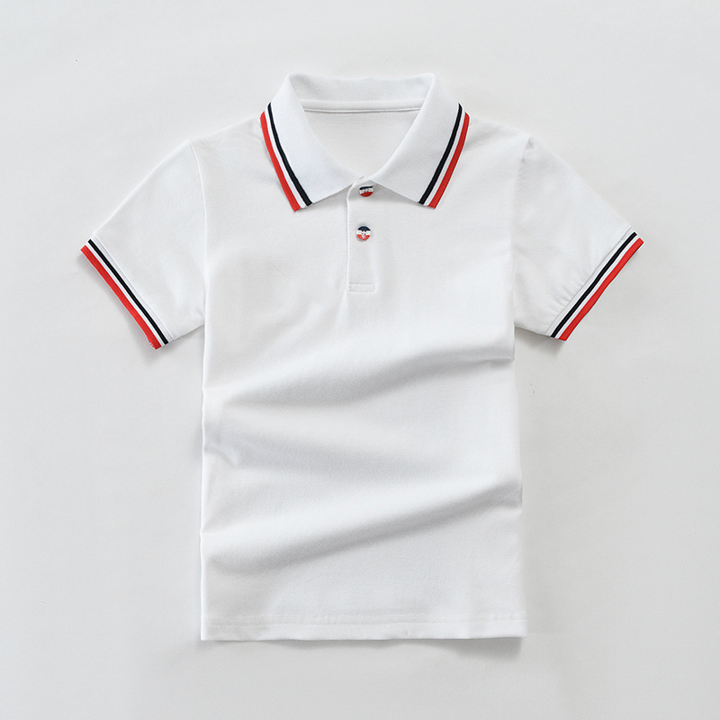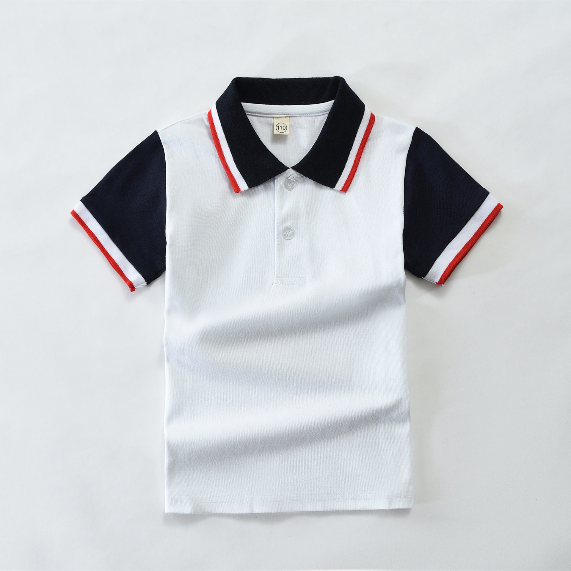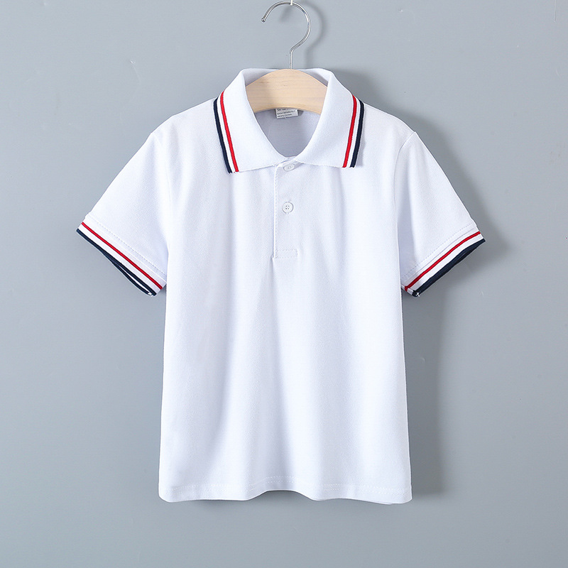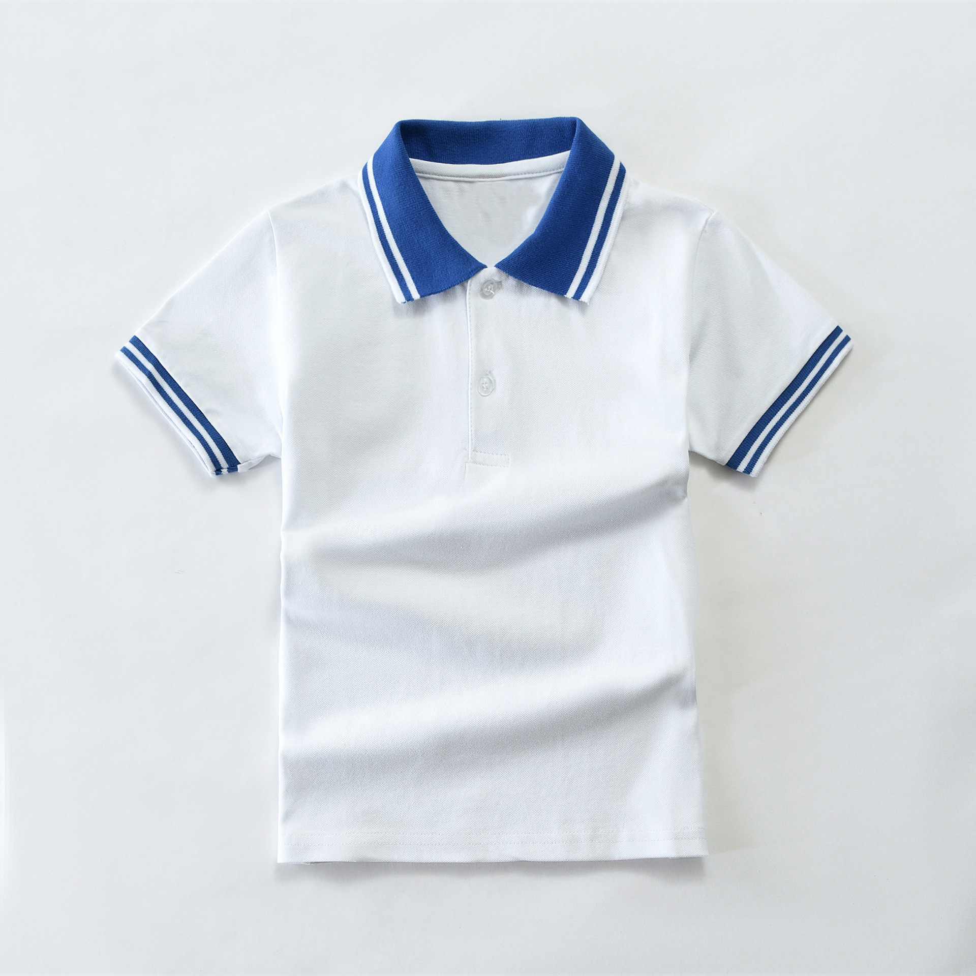 반팔 티셔츠 티셔츠 키즈 화이트 티셔츠 반팔 어린이 폴로 셔츠 코튼 옷깃 여름 남학생과 여학생을위한 교복