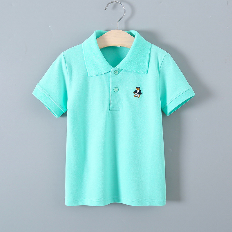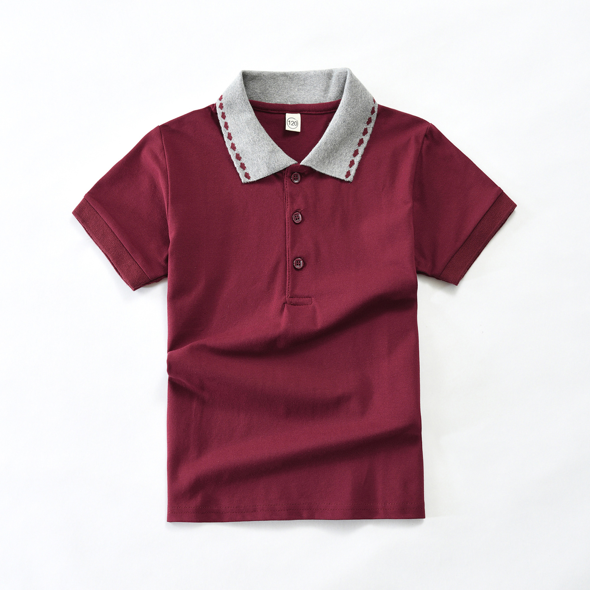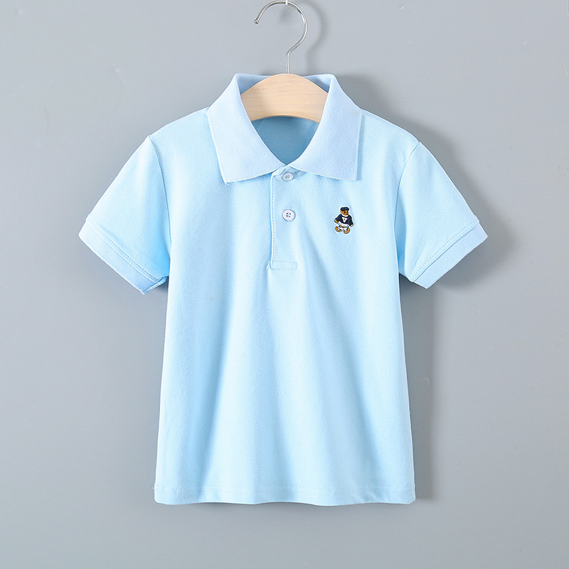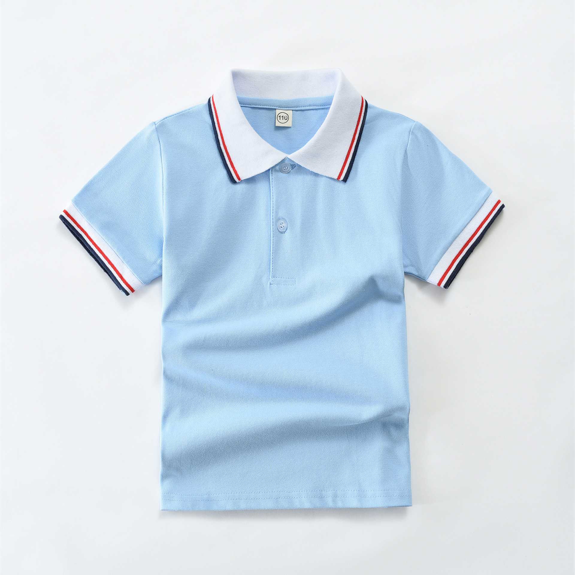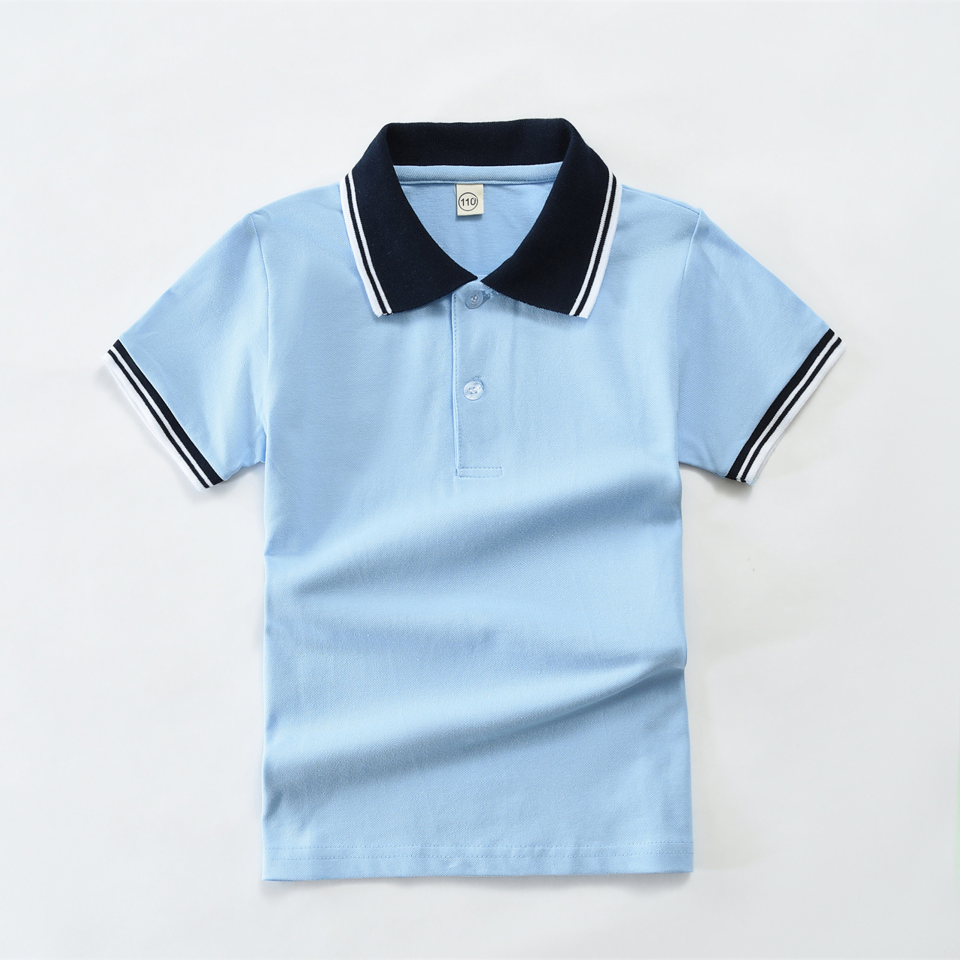 반팔 티셔츠 티셔츠 키즈 화이트 티셔츠 반팔 어린이 폴로 셔츠 코튼 옷깃 여름 남학생과 여학생을위한 교복