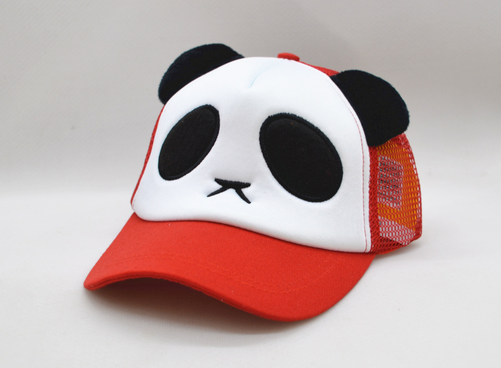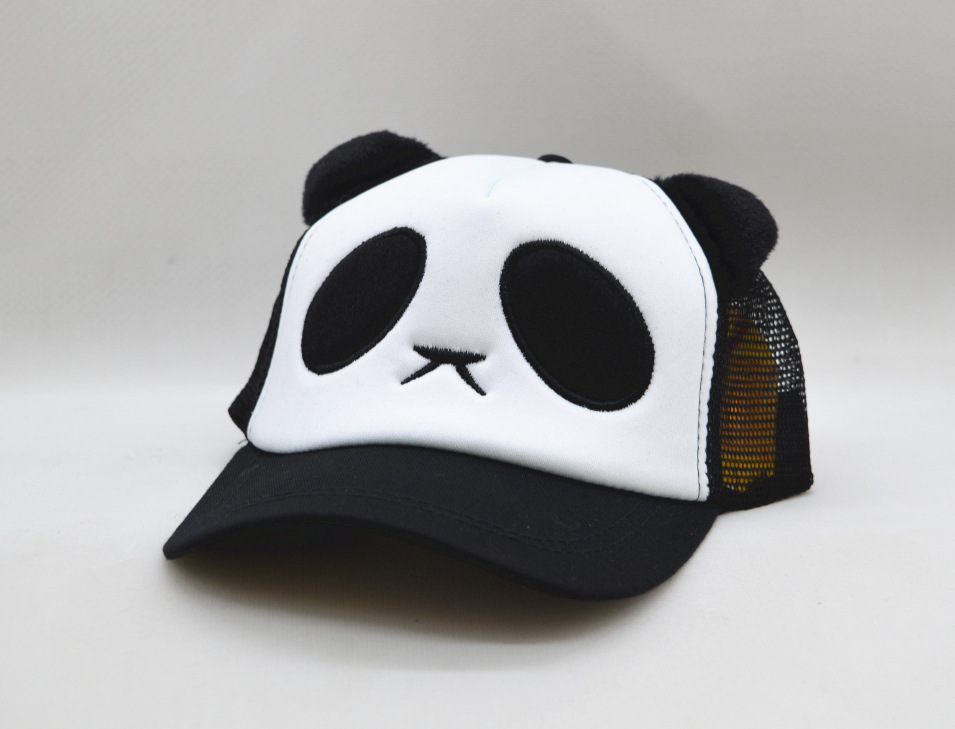 여름 거즈 유아 만화 부모-자식 팬더 야구 모자 아기 모자 어린이 태양 자수 모자