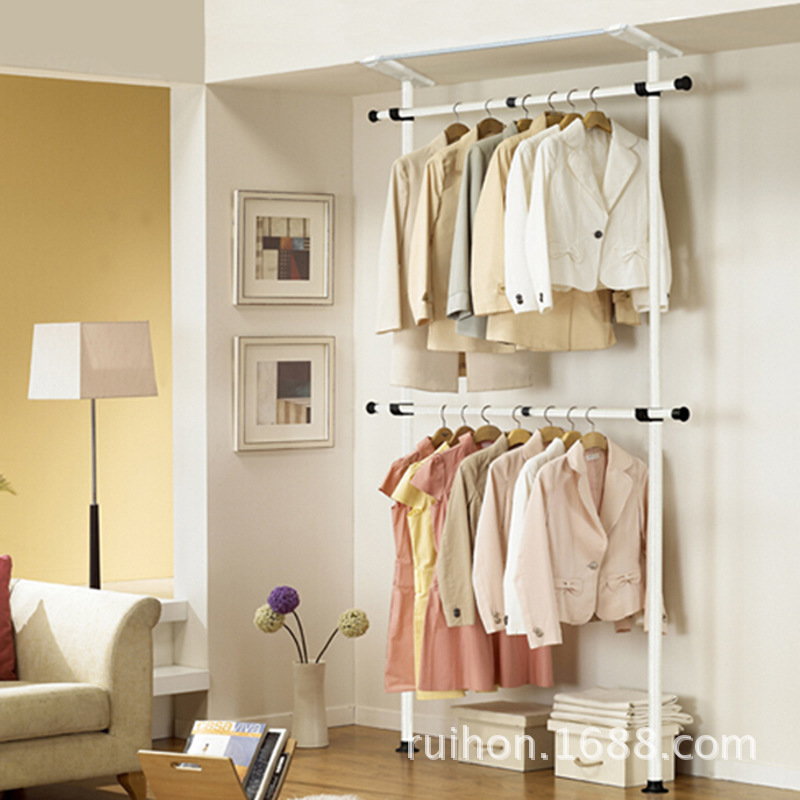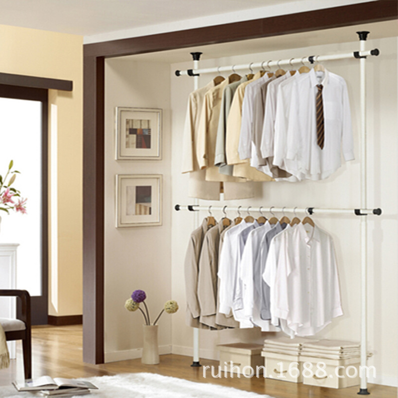 서 있는 옷 걸이 바닥 침실 오픈 간단한 수하물 보관소 보관 선반 조립 옷장 코트 랙 걸이스토어 가기