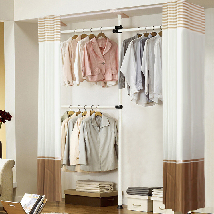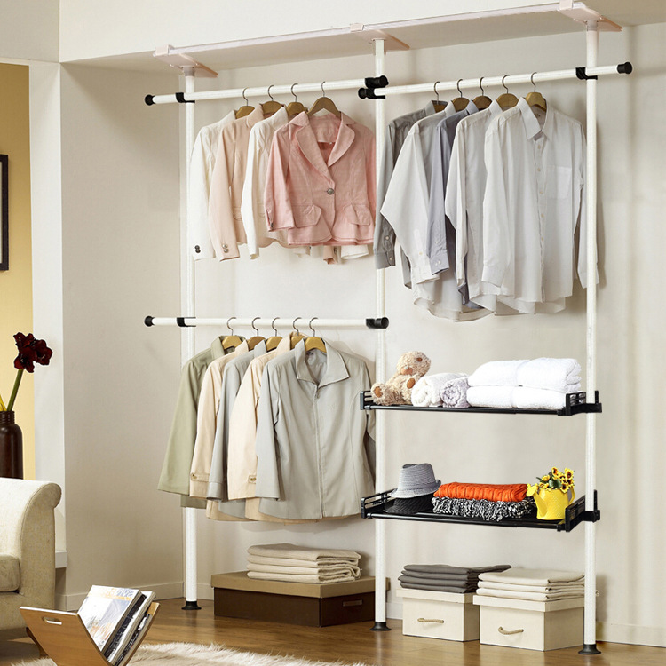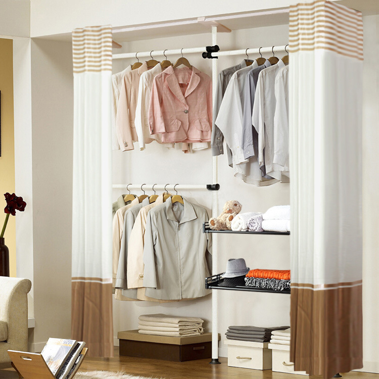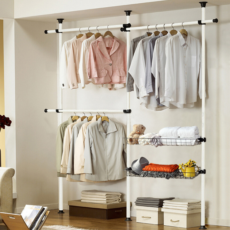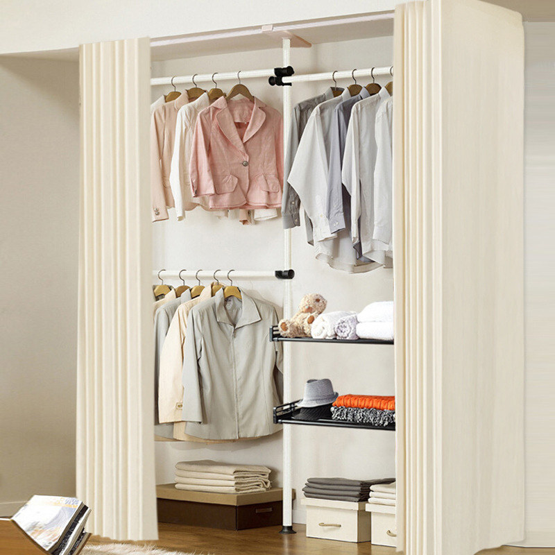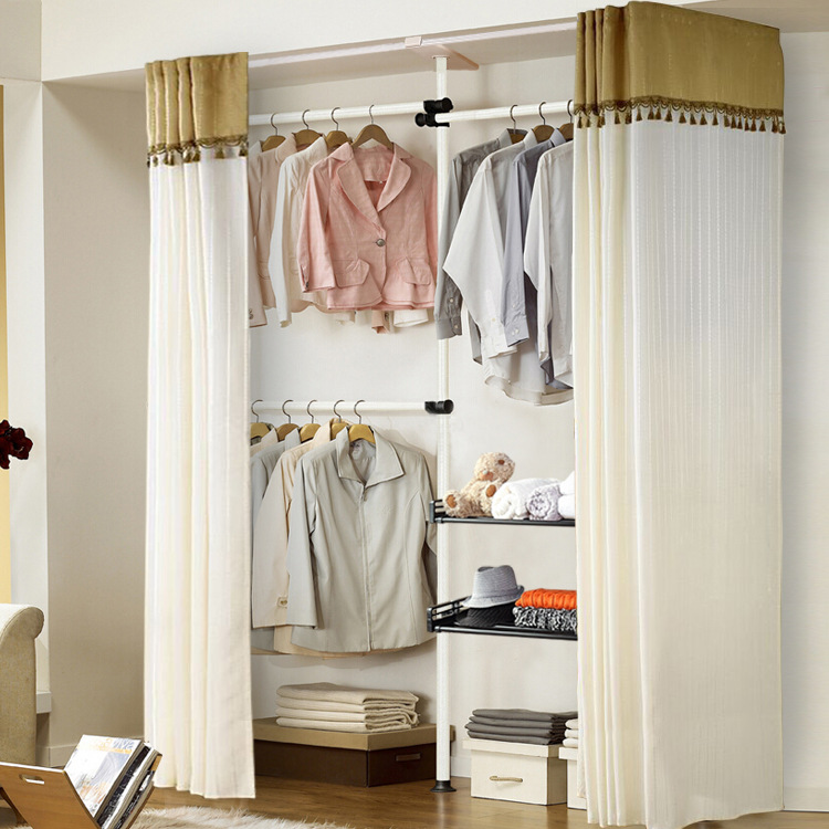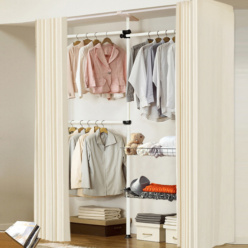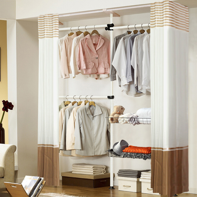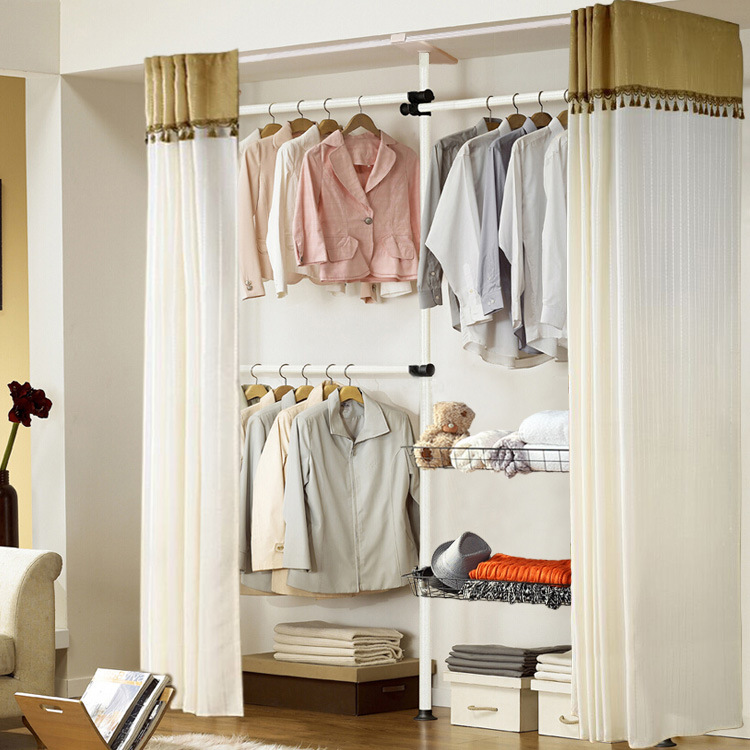 서 있는 옷 걸이 바닥 침실 오픈 간단한 수하물 보관소 보관 선반 조립 옷장 코트 랙 걸이