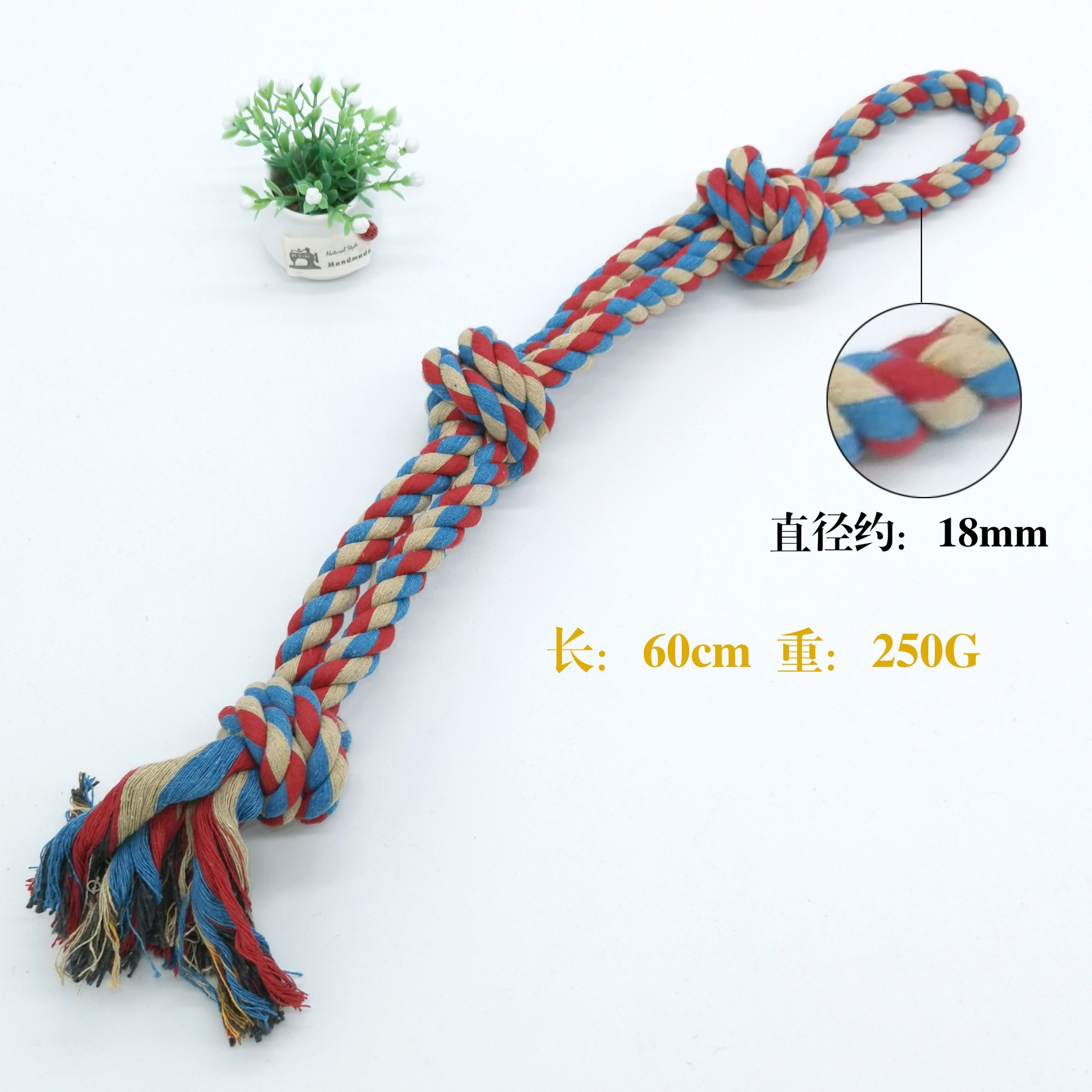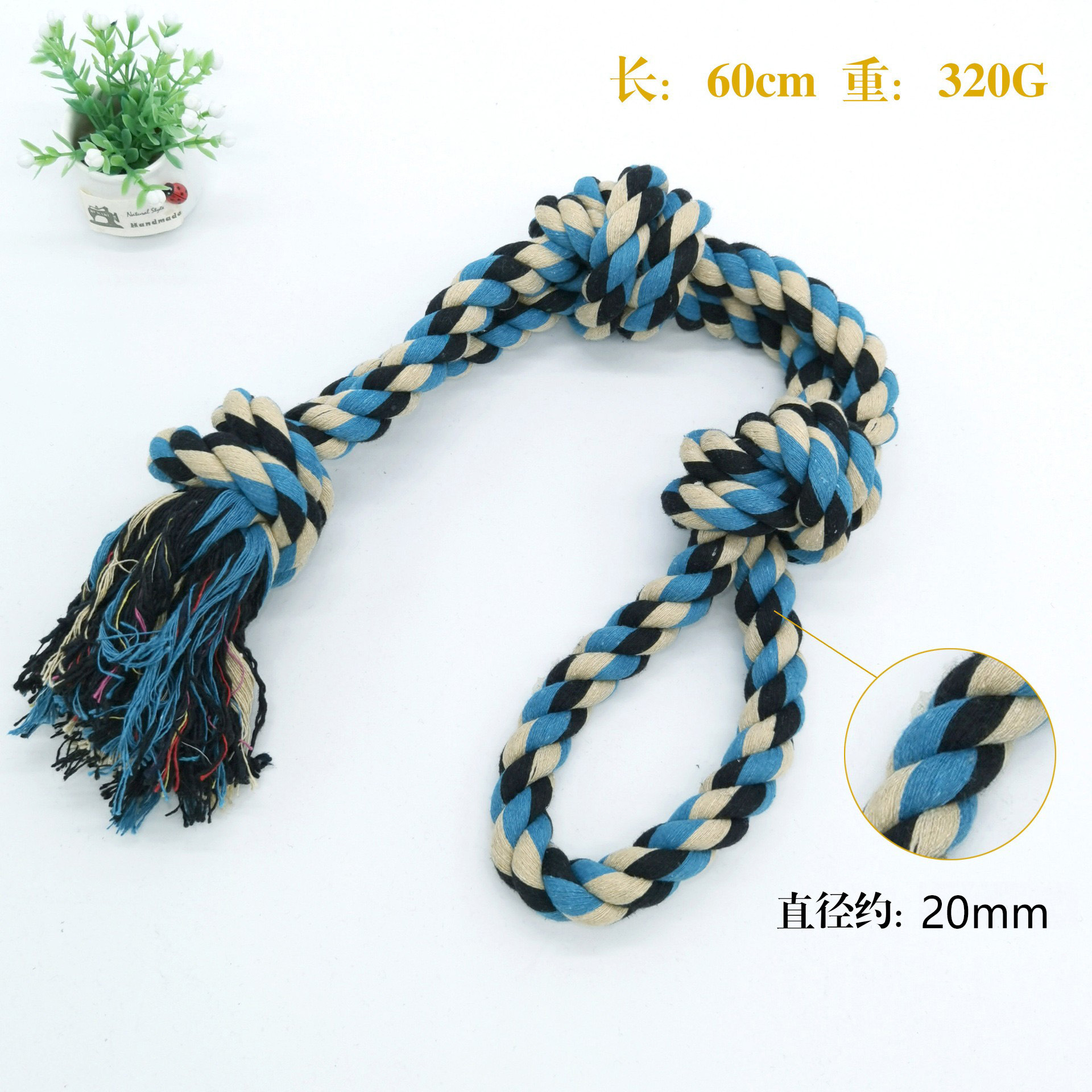 产品名称:中大型犬双股三结咬绳   产品包装:散装