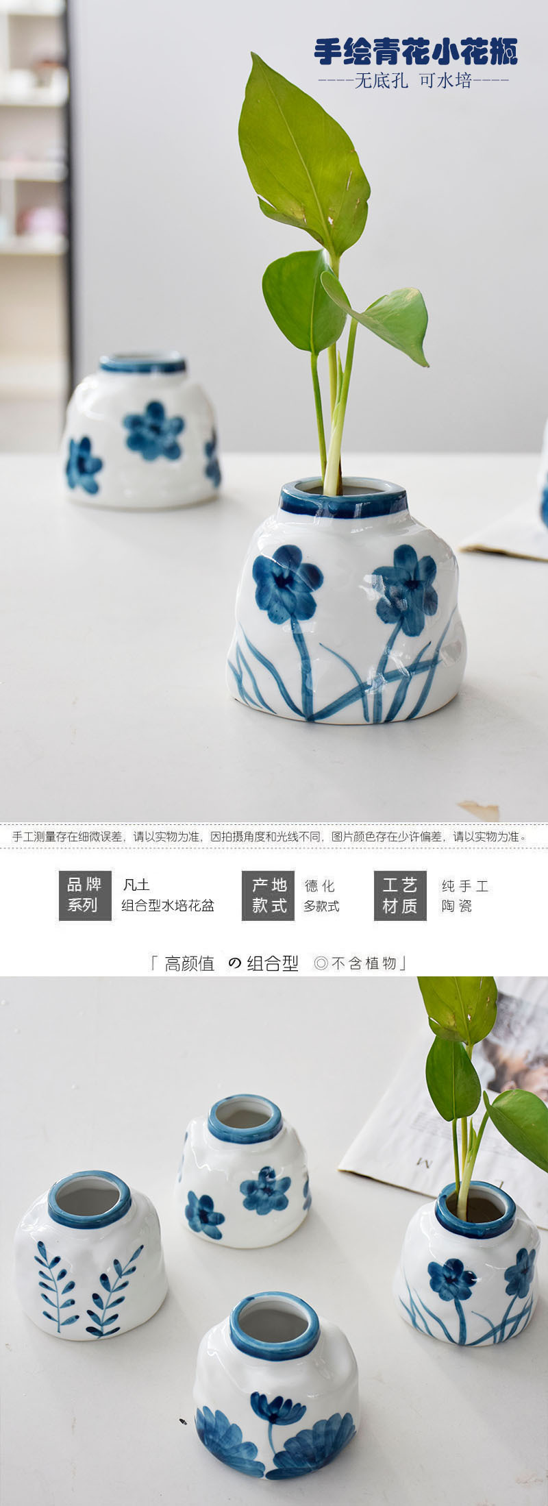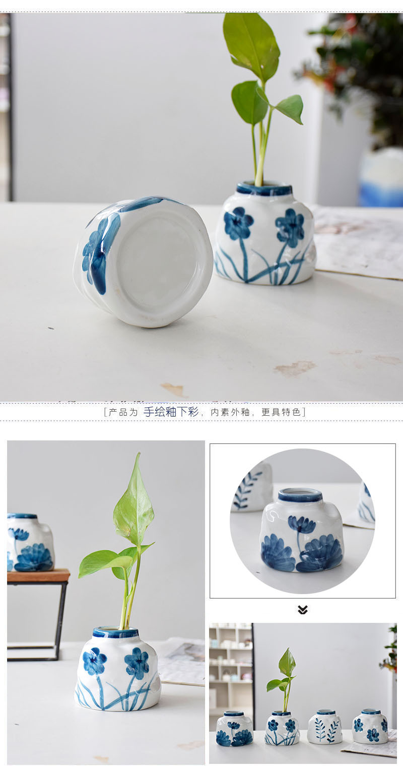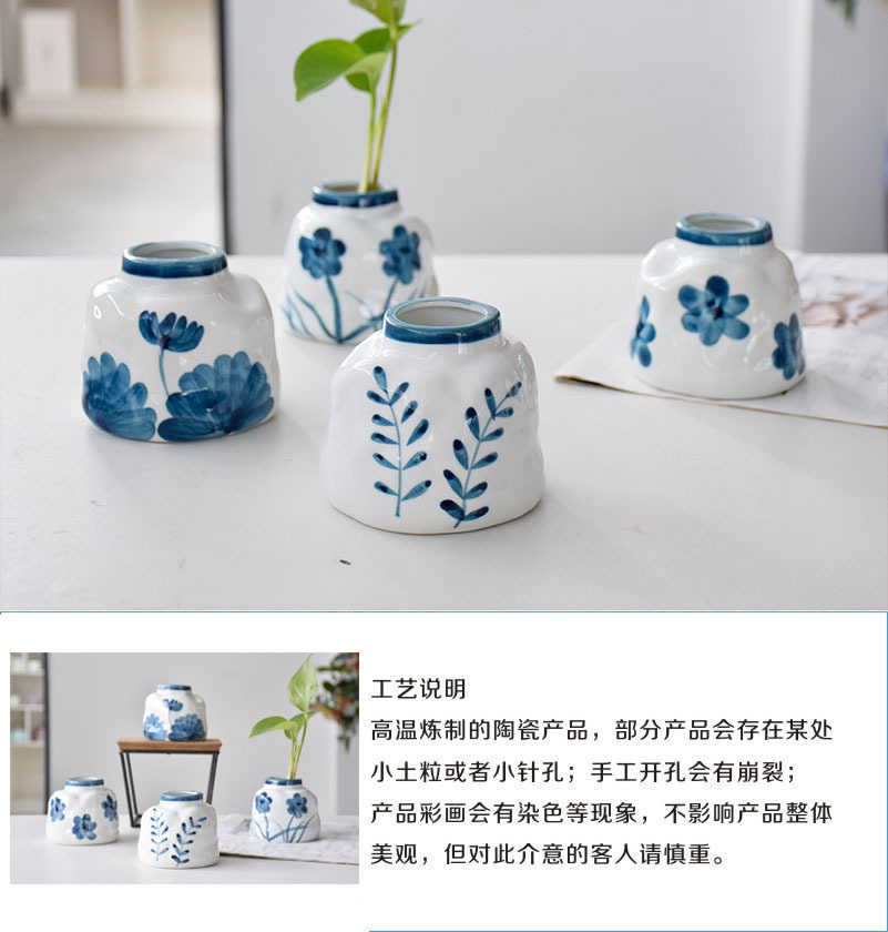공장 직접 판매 뜨거운 새 스타일 Guofeng 수경 작은 꽃병 장식품 비 다공성 손으로 그린 데스크탑 녹색 식물 수경 분지스토어 가기