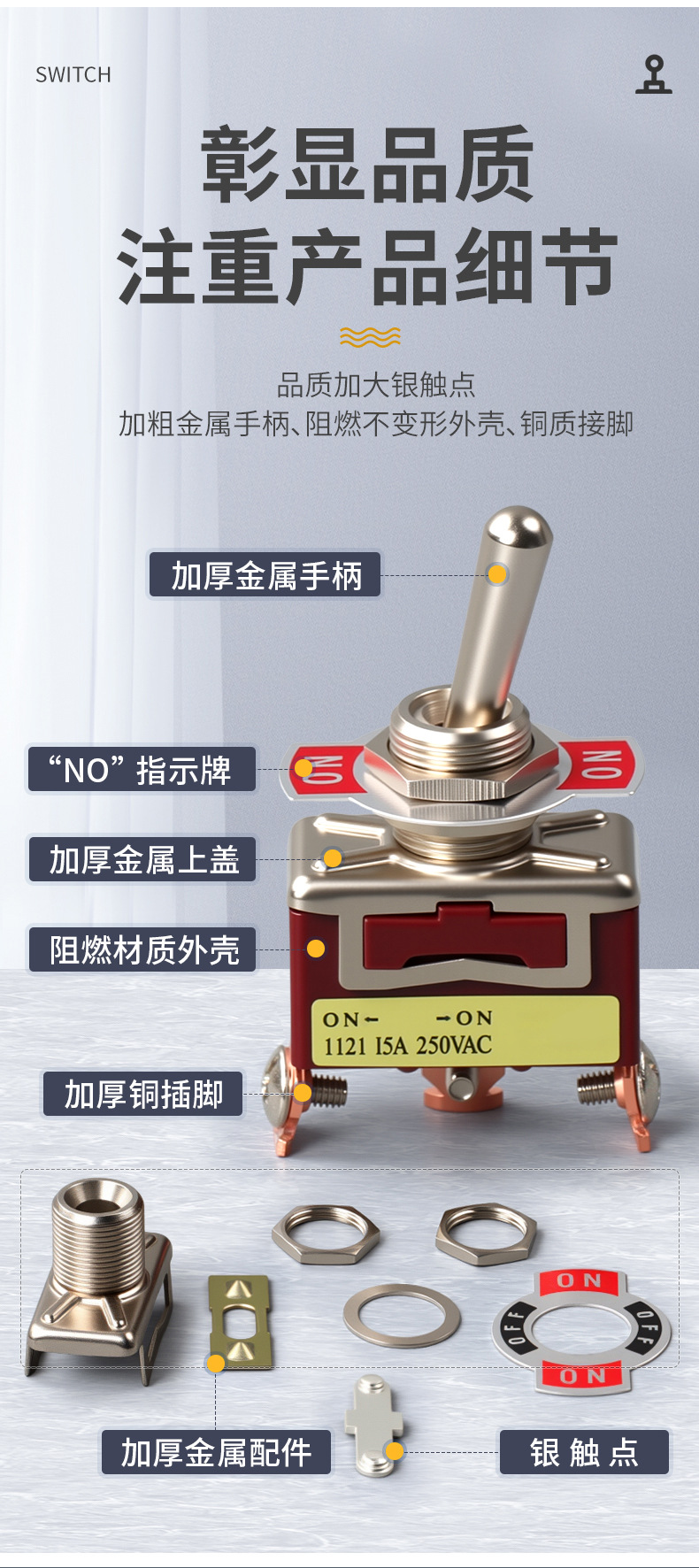 황동 토글 스위치 E-TEN1021 머리 로커 팔 토글 자동차 스위치 2 피트 2 속도 버튼 핸들 도매스토어 가기