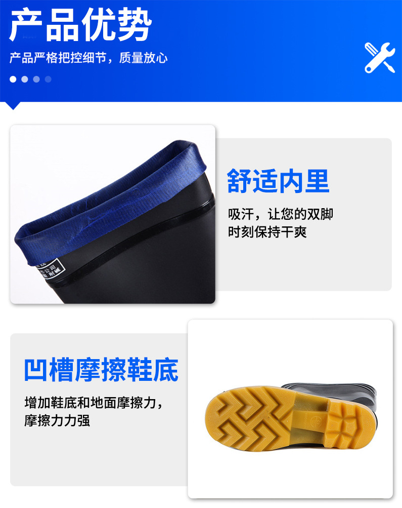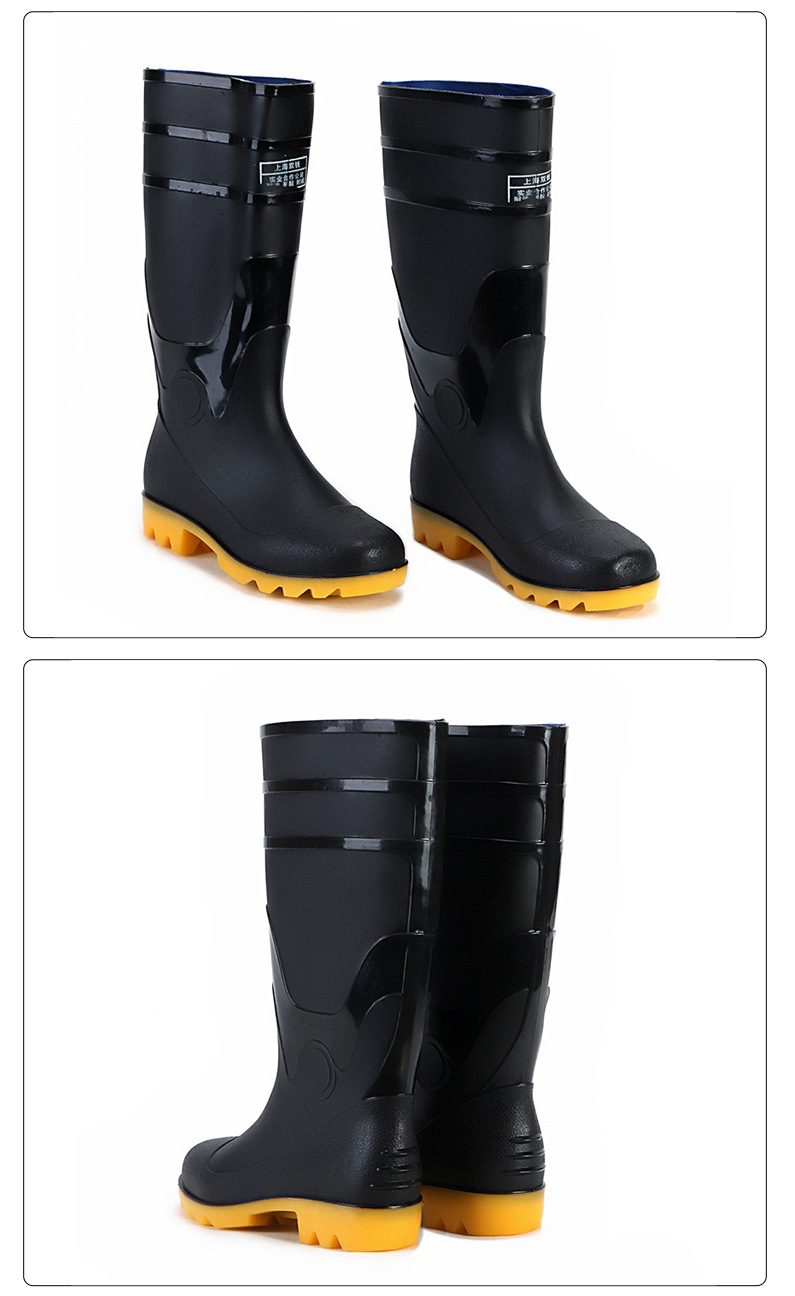 남자의 높은 배럴 산성 및 알칼리 저항 두꺼운 젖빛 표면 비 신발 노동 보호 작업 3-증거 고무 신발 미끄럼 방지 내마모성 방수 덧신