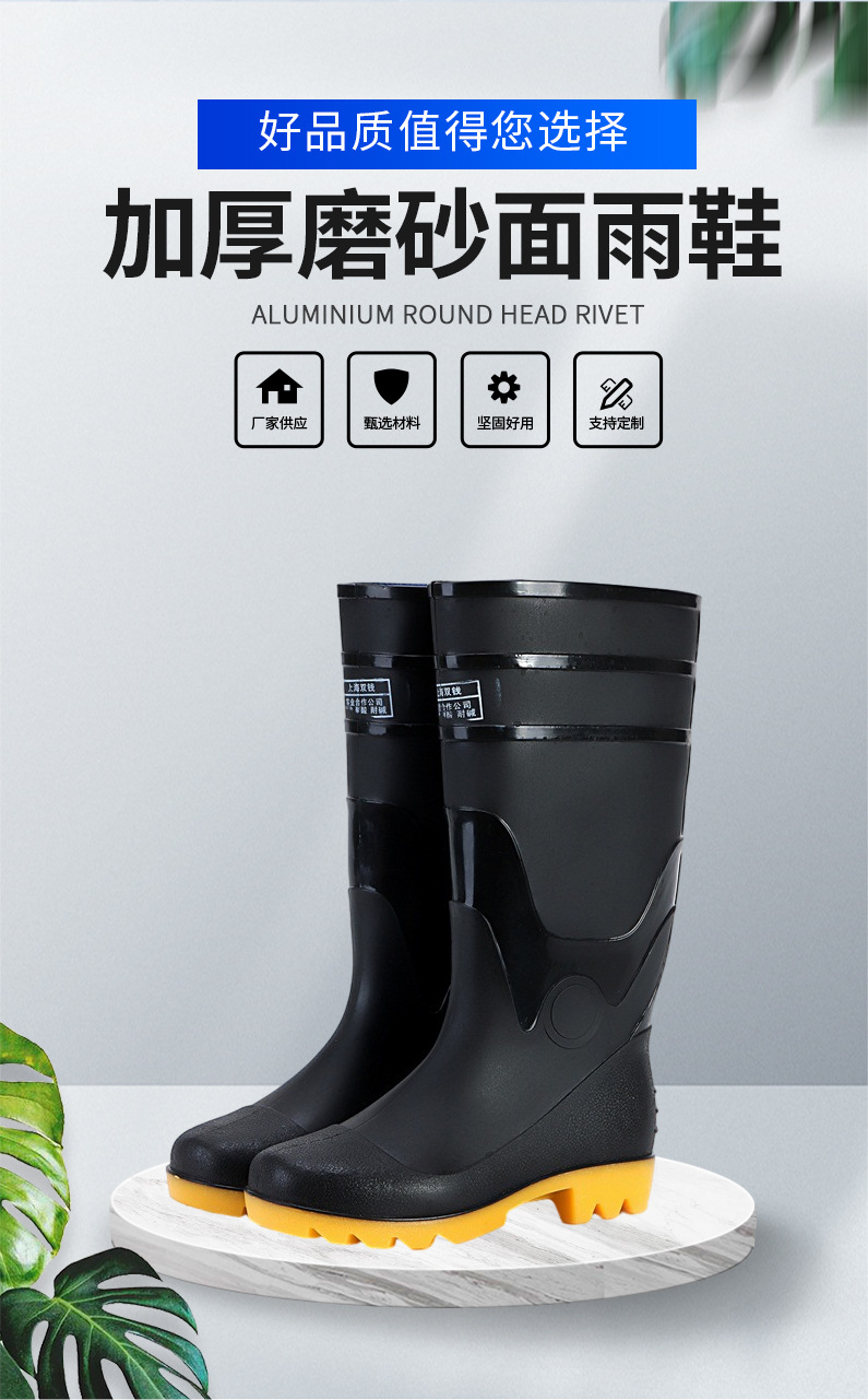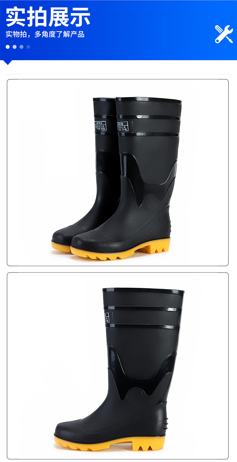 남자의 높은 배럴 산성 및 알칼리 저항 두꺼운 젖빛 표면 비 신발 노동 보호 작업 3-증거 고무 신발 미끄럼 방지 내마모성 방수 덧신스토어 가기
