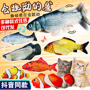 亚马逊同款电动鱼逗猫仿真鱼会跳动的鱼usb跳跳鱼猫玩具厂家直供