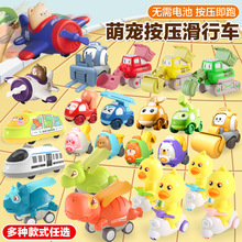 跨境儿童回力玩具车小男孩卡通按压恐龙小黄鸭工程车玩具摆摊批发