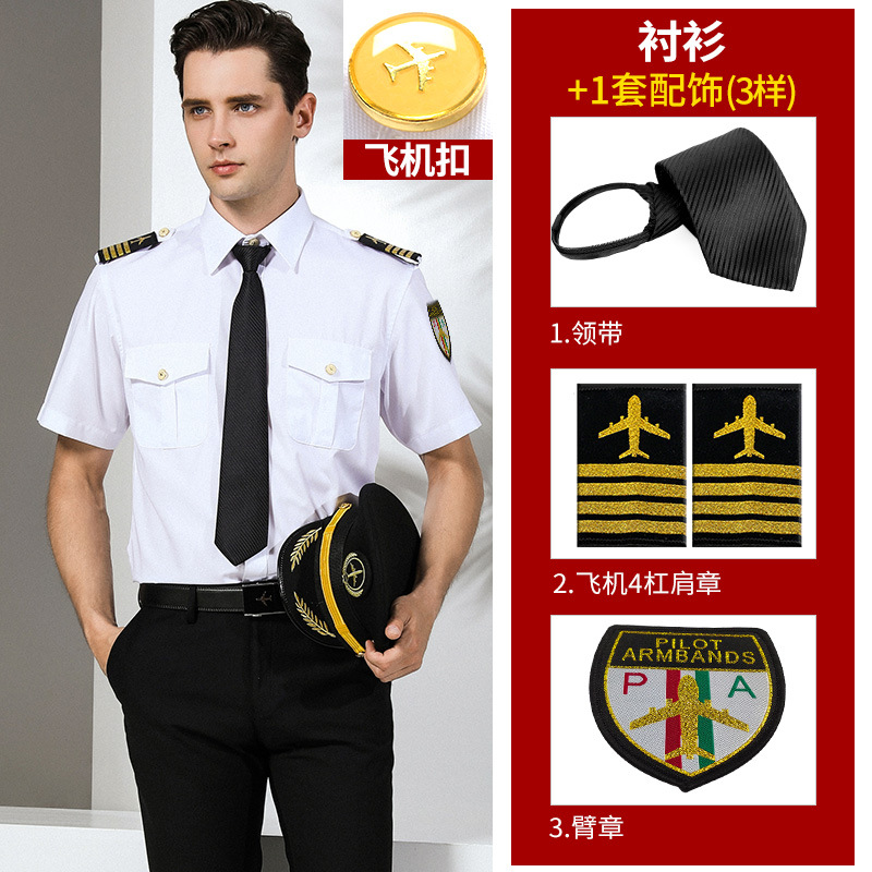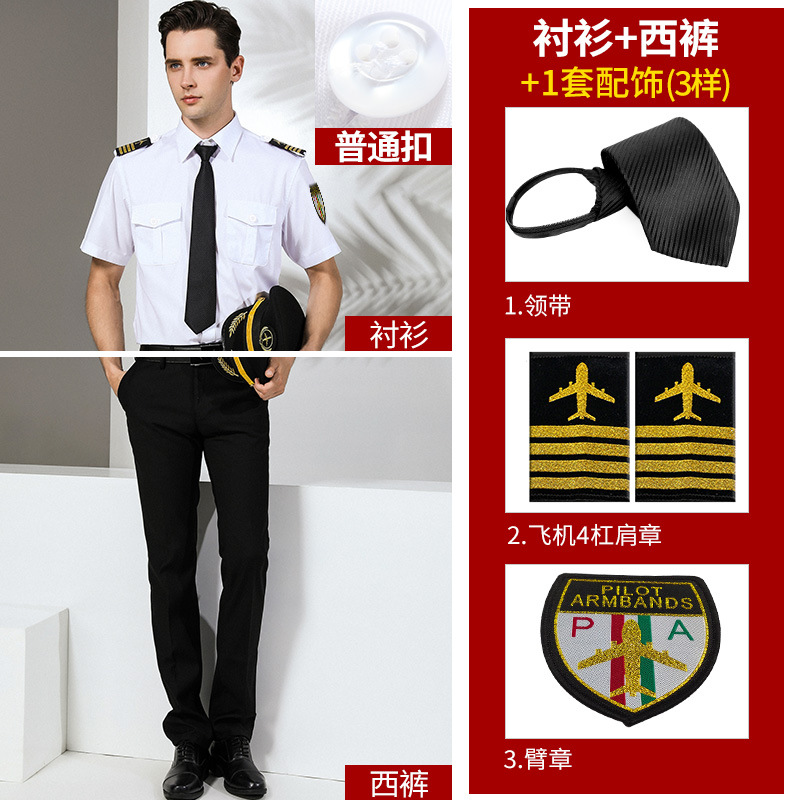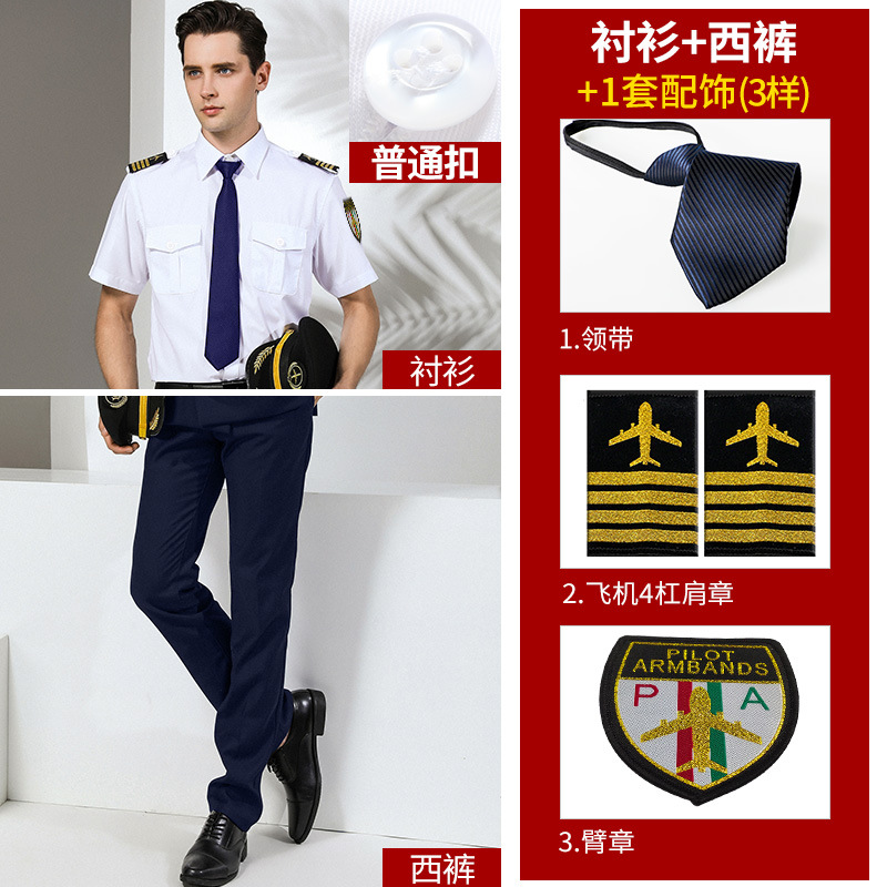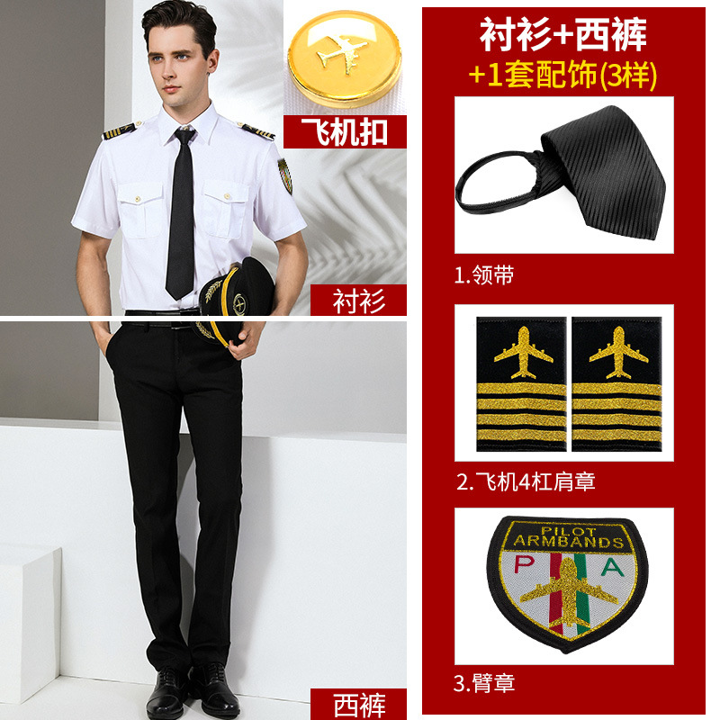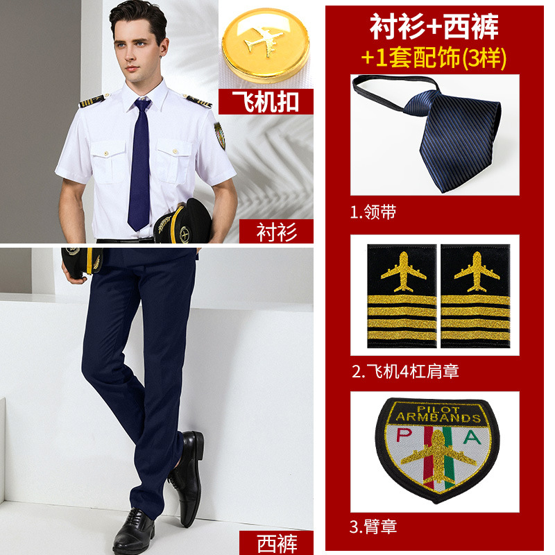 • 비행기 버클 짧은 소매 + 다크 블루 바지 + 액세서리 3