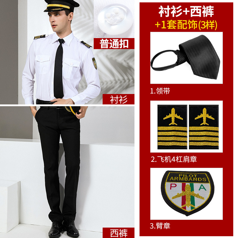 • 비행기 버클 긴 소매 + 검은 바지 + 액세서리 3