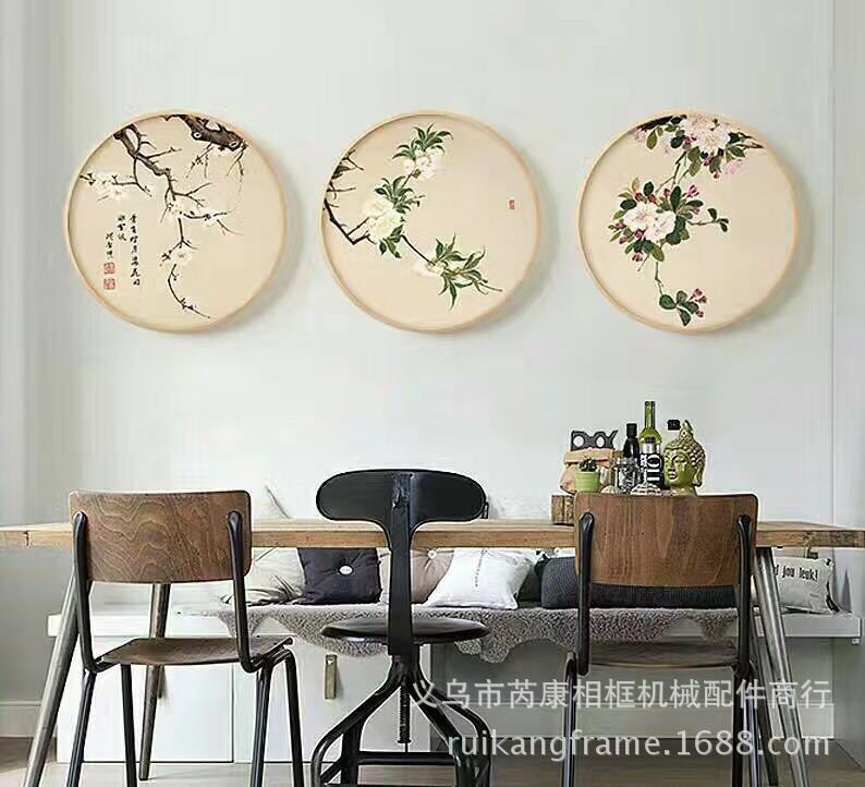 实木圆形框新中式圆框画框包覆框实木圆形镜框装饰画框