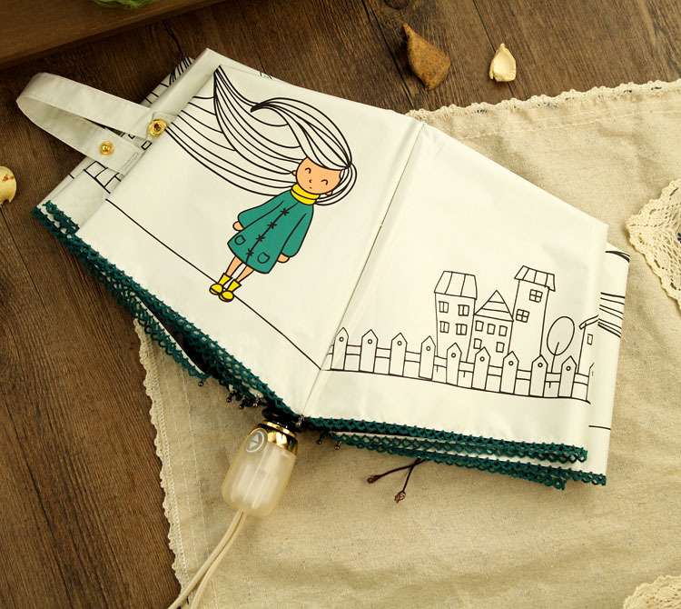 OLYCAT Ouli 고양이 블랙 접착제 불투명 긴 머리 소녀 자동 써니 우산 안티 자외선 차양 3 배 우산스토어 가기