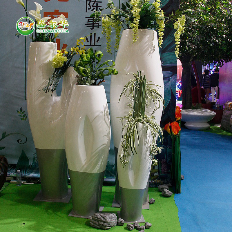 창조적 인 유리 섬유 강화 플라스틱 쇼핑몰 판매 사무실 꽃 냄비 모델 방 꽃 도자기 영화 꽃 꽃병 장식 호텔 꽃병