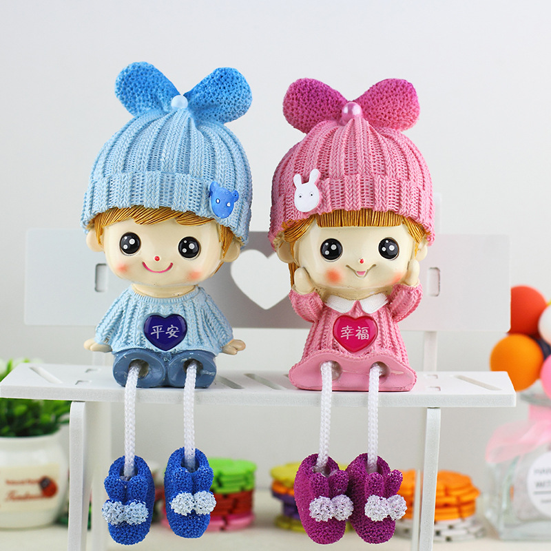 귀여운 개 커플 교수형 발 인형 수지 공예 장식품 크리 에이 티브 소프트 홈 액세서리 선물