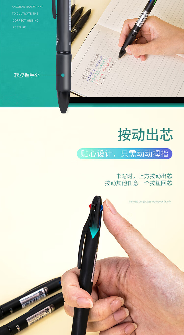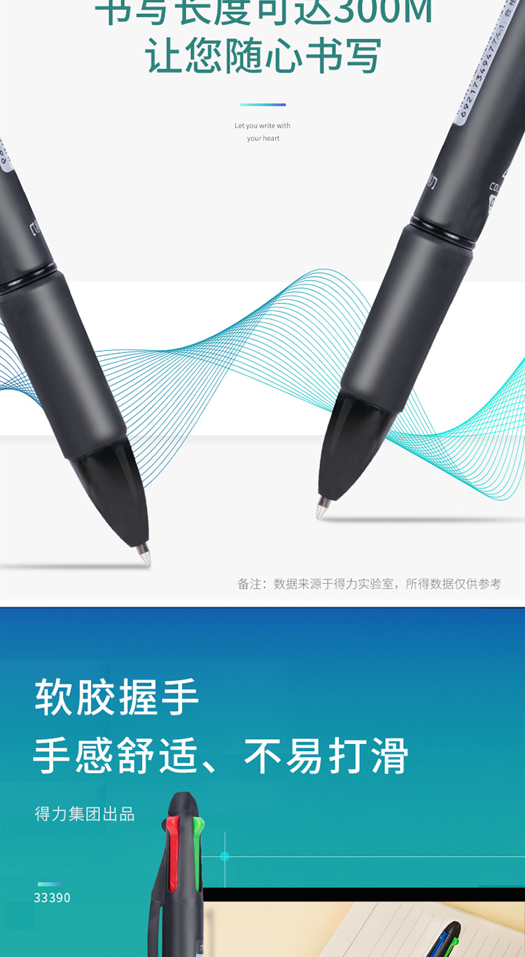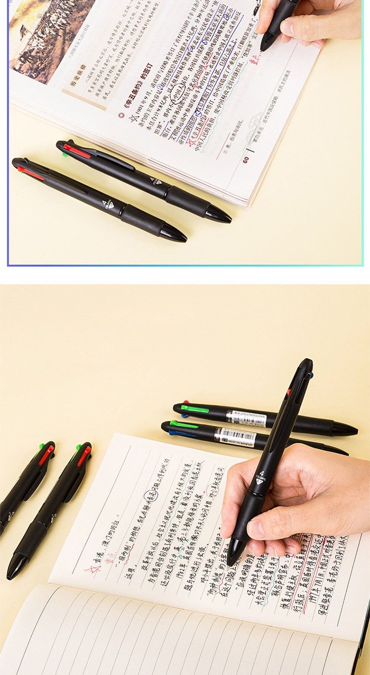 델리 33390 볼펜 4 색 푸시 볼 펜 오일 펜 4 색 코어 학생 마킹 필기 펜 도매